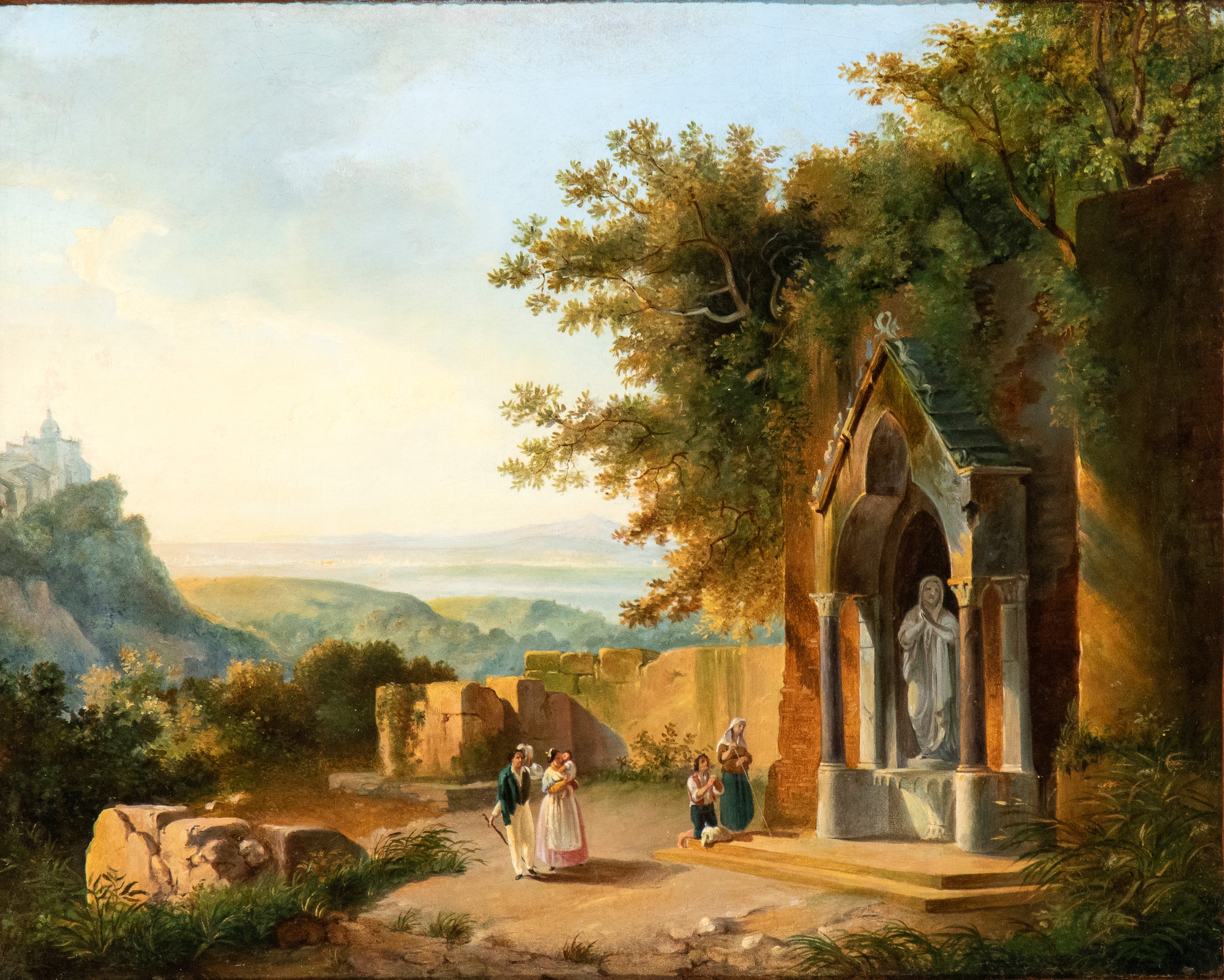 Votive shrine in the Latium countryside with a view of Ariccia in the background