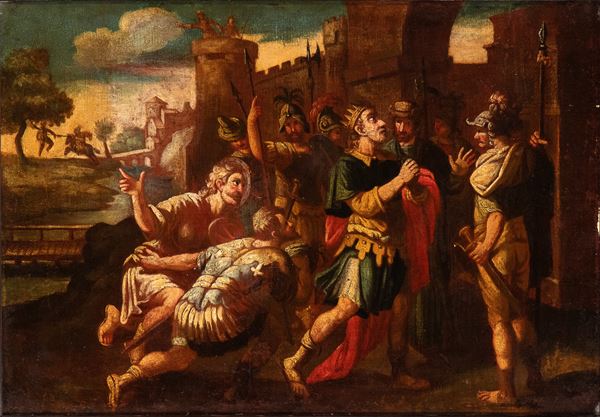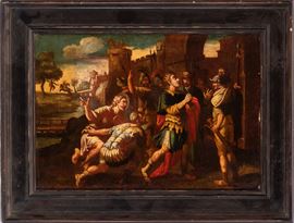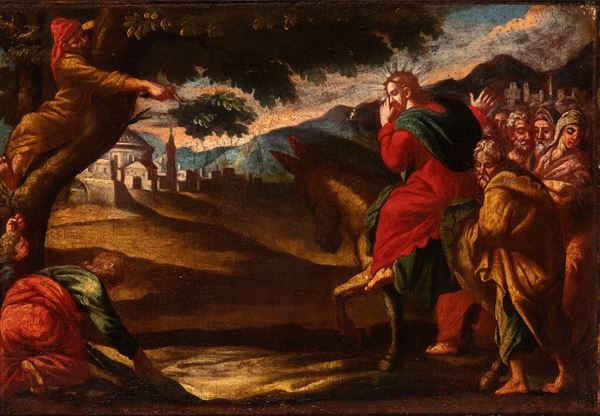 a) Entry into Jerusalem; b) Biblical subject. Pair of paintings