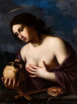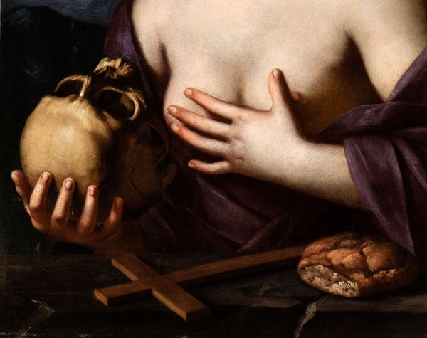 This elegant painting, in excellent state of preservation, has been attributed to Pacecco De Rosa by Prof. Nicola Spinosa, who recognizes the refined style and emotional depth typical of the artistโs mature period. The Magdalene, shown in meditation with a skull and a gesture of repentance, reflects the painterโs soft luminism and naturalistic sensibility. Executed around the mid-17th century, the work reveals De Rosaโs dialogue with Massimo Stanzione and the classicism of Guido Reni and Domenichino.