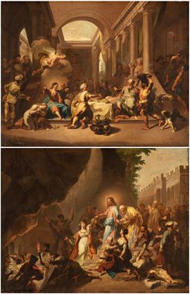 a) The feast in the House of Simon the Pharisee; b) The Resurrection of Lazarus. Pair of paintings