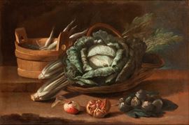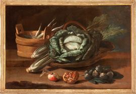 This elegant pair of still lifes with vegetables in a kitchen interior, executed in oil on canvas, is attributed to Nicola Levoli, an 18th-century painter from Emilia. These works reflect the artistβs realist sensibility and refined color harmony, offering a valuable glimpse into everyday life in 18th-century Italy.