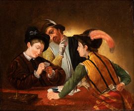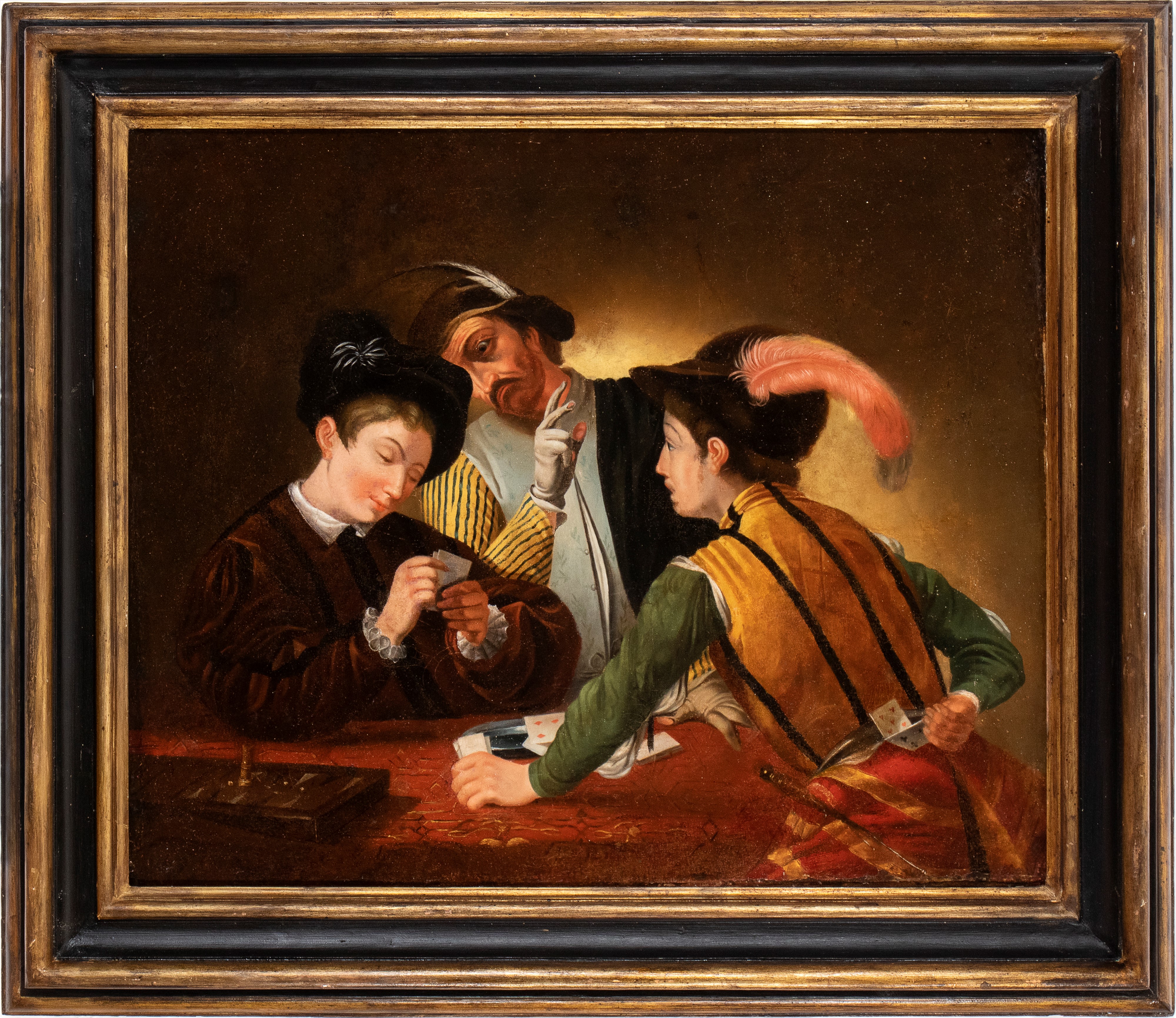 The canvas is an old copy of good quality of the painting by Caravaggio today in the Kimbell Art Museum of Fort Worth.