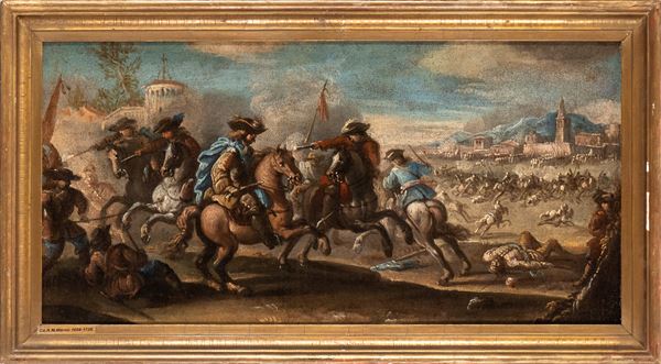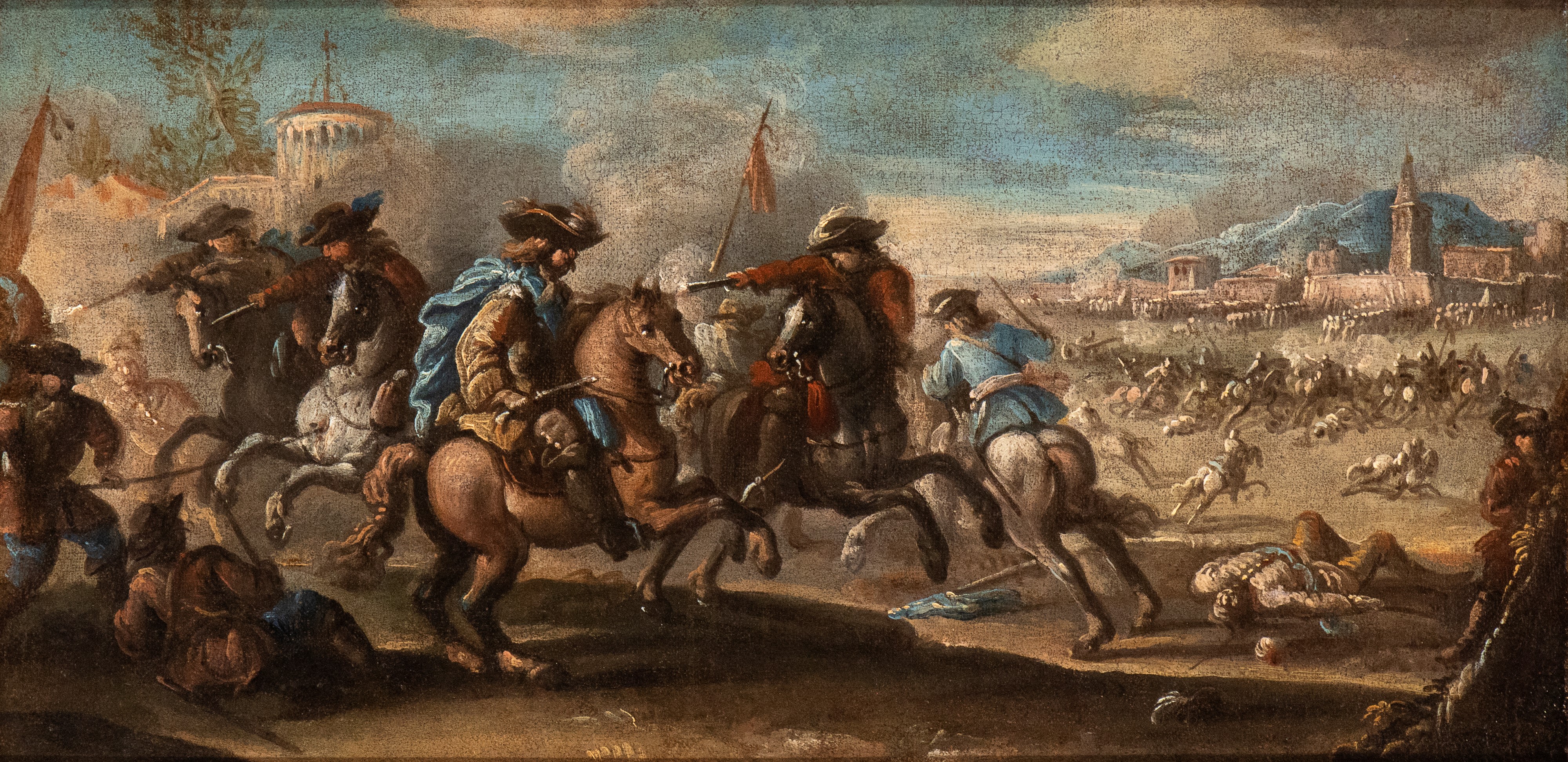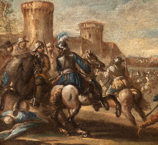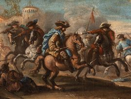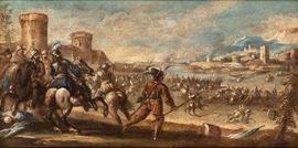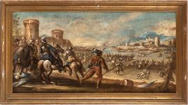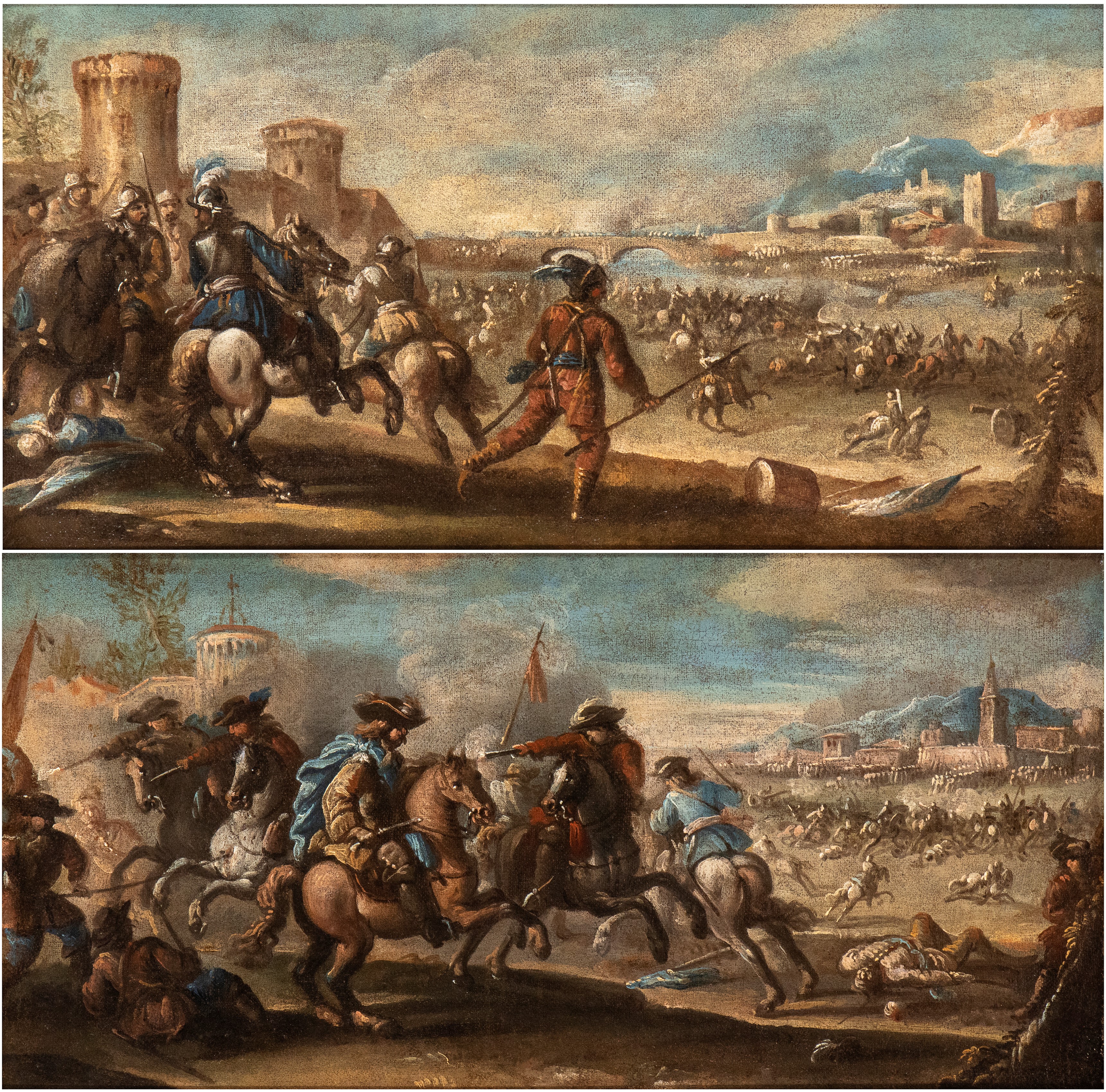 Two episodes of the battle of Fornovo near Parma. Pair of paintings