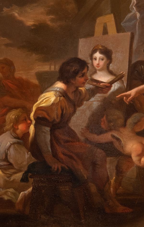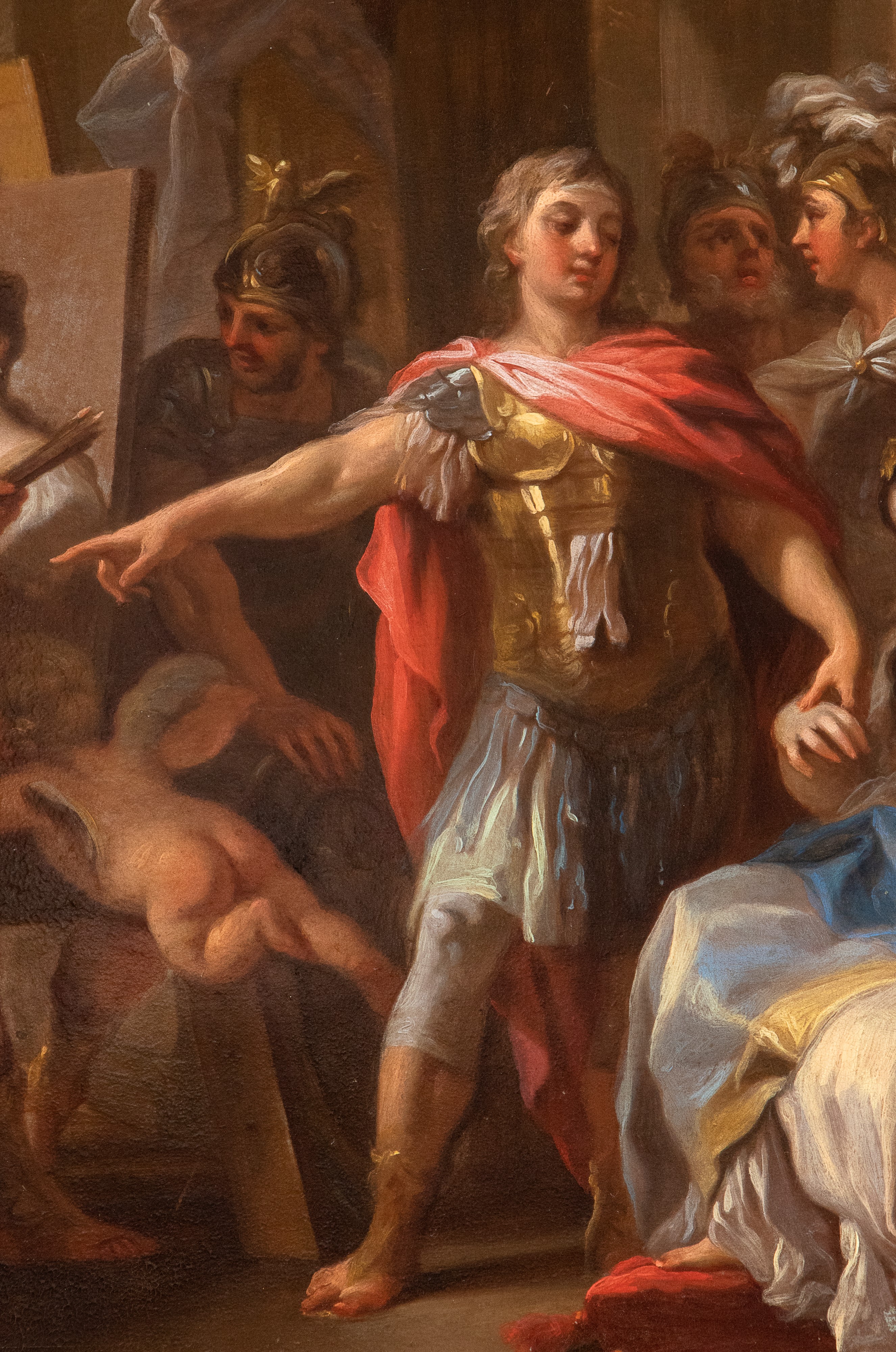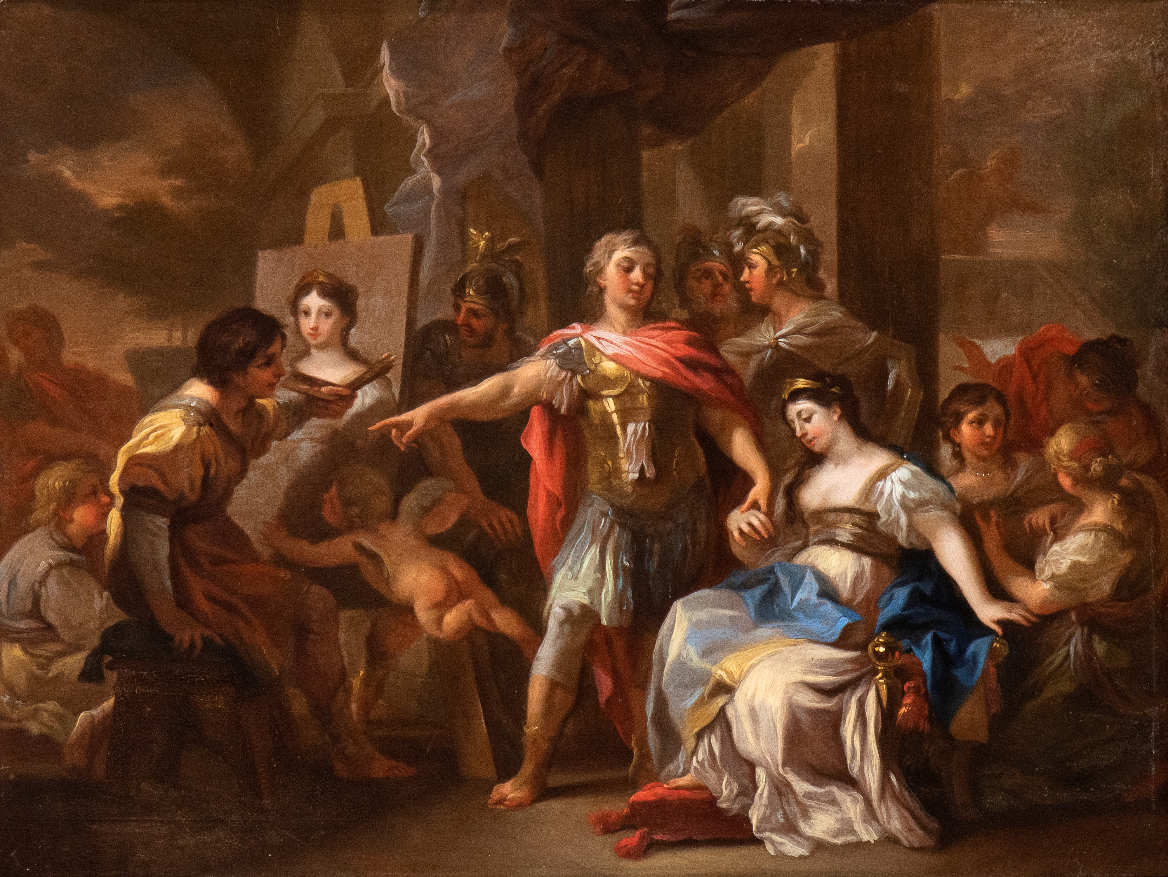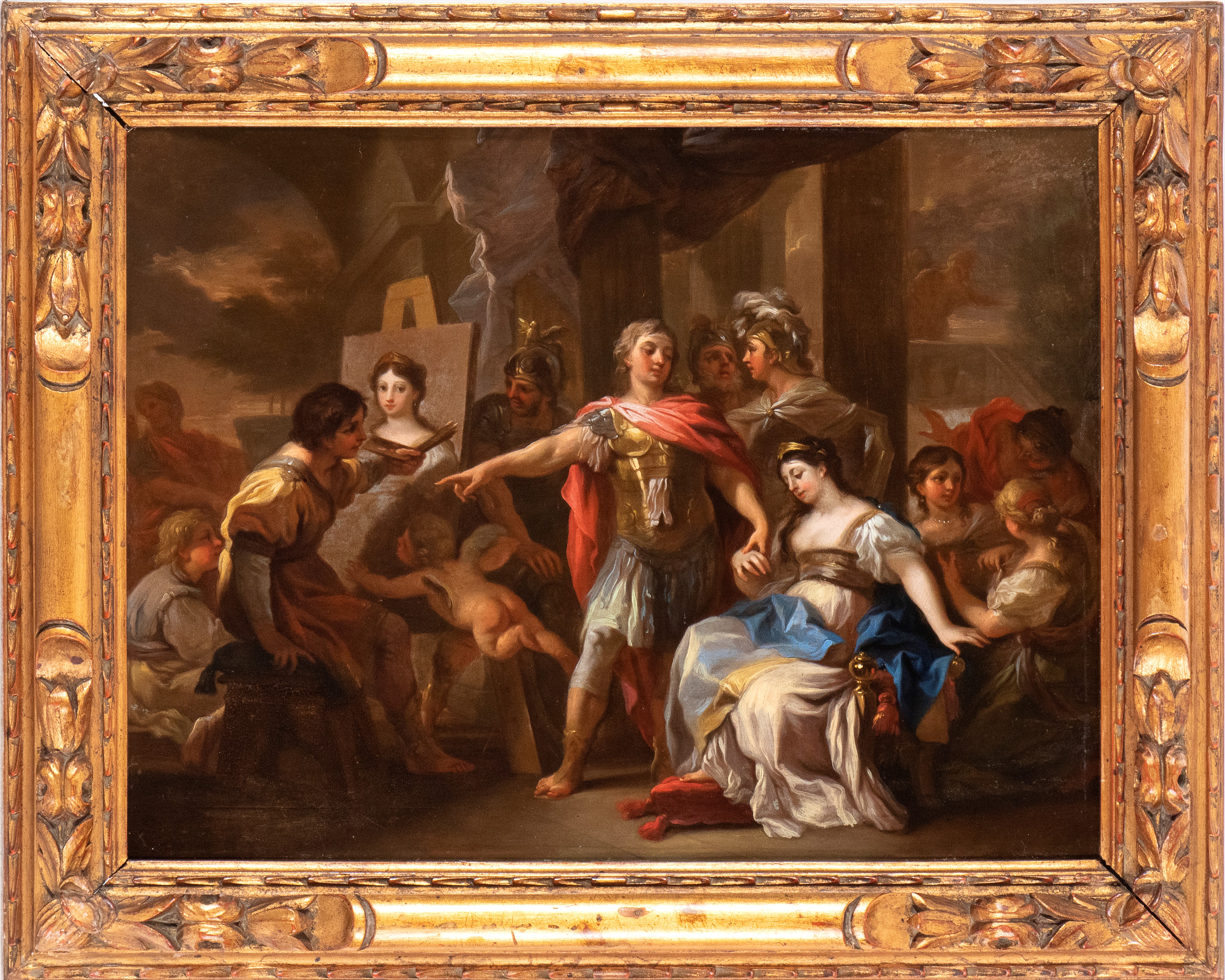 The painting is a high-quality version of Francesco Solimena's successful composition, known to exist in at least three other versions. Two of these are painted on copper, like the present example, and are now housed at Chatsworth House in Devonshire and in the Valerio collection in Geneva, respectively, while a large version on canvas is preserved at Palazzo Madama in Rome.