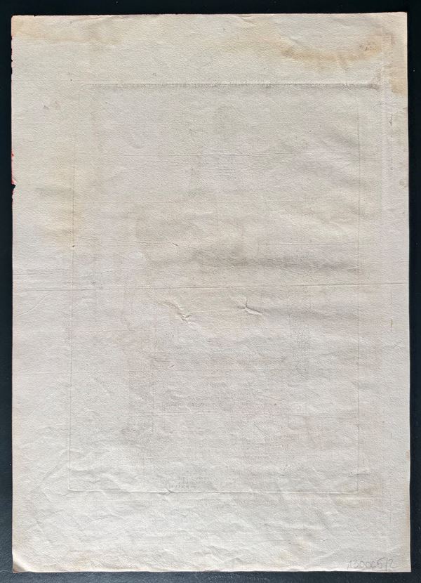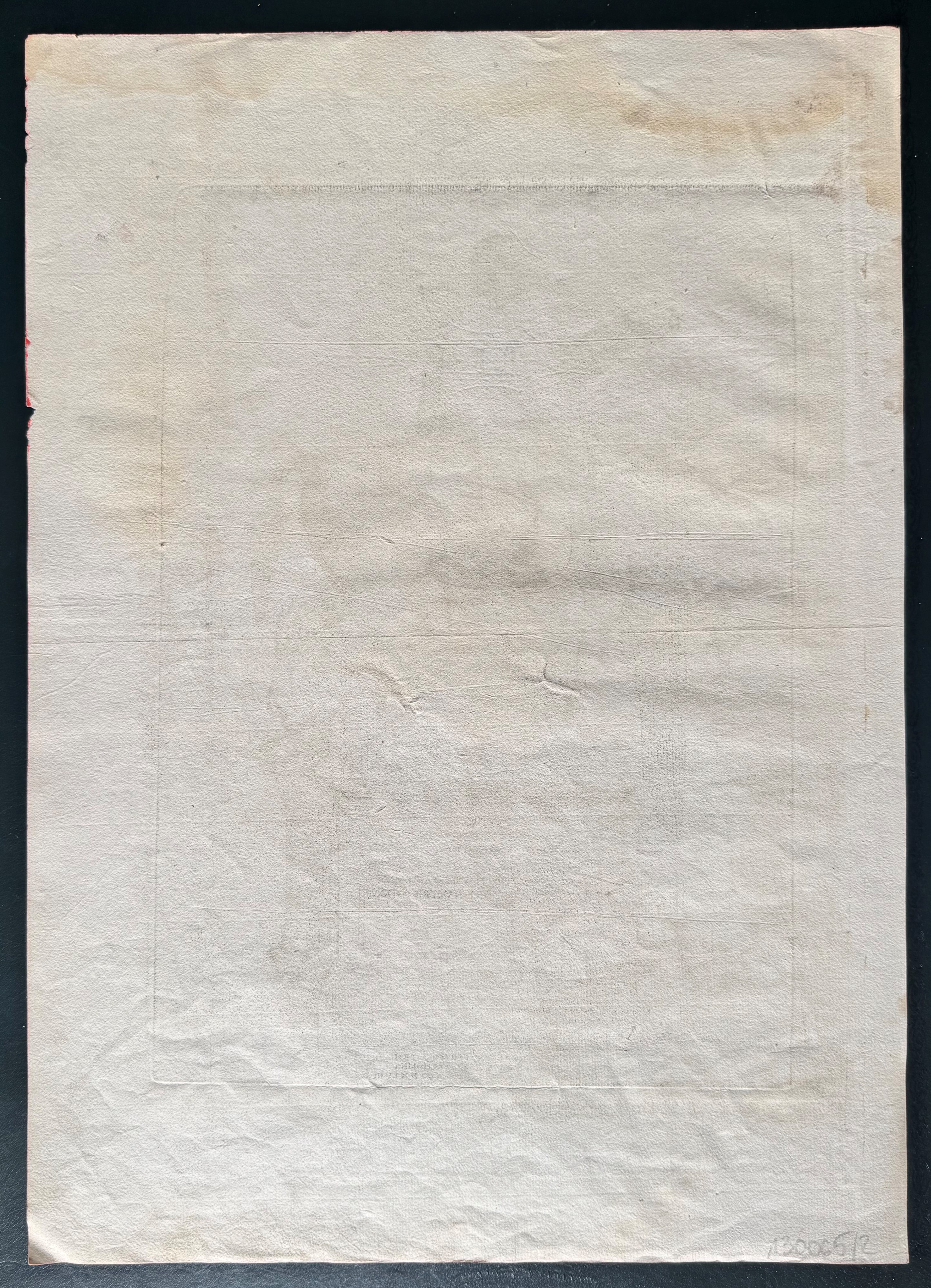Well-inked impression on laid paper with watermark: scale within a shield surmounted by a cross. Excellent condition, except for a small tear on the upper margin.