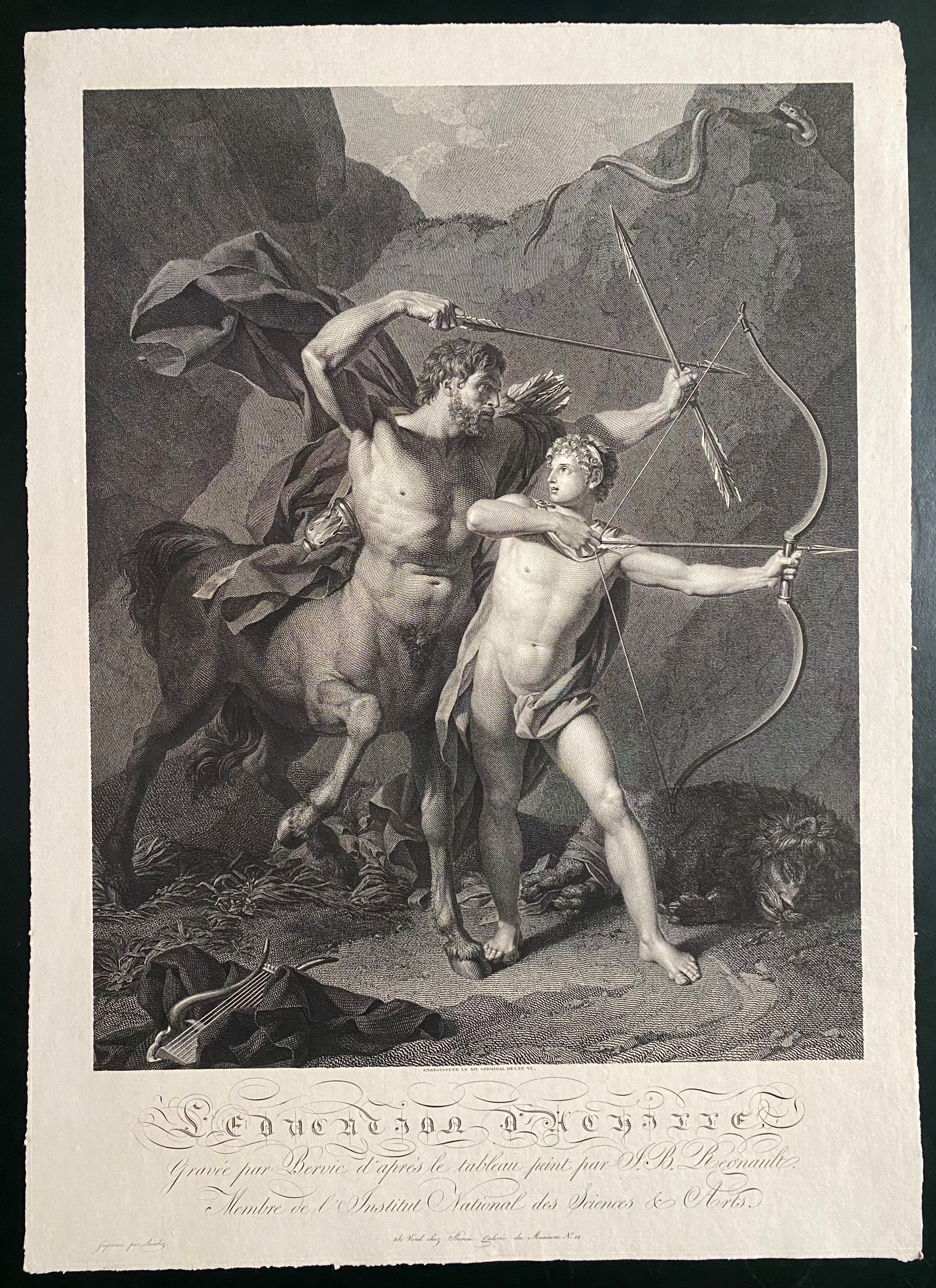 Very fine impressions on heavy laid paper. "L'Enlèvement de Déjanire" in excellent condition. "L'Education d'Achille" has a very well-executed restoration on the upper left margin and light foxing, but overall also in excellent condition.