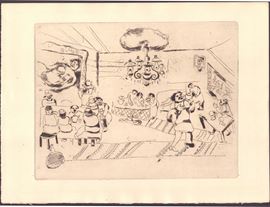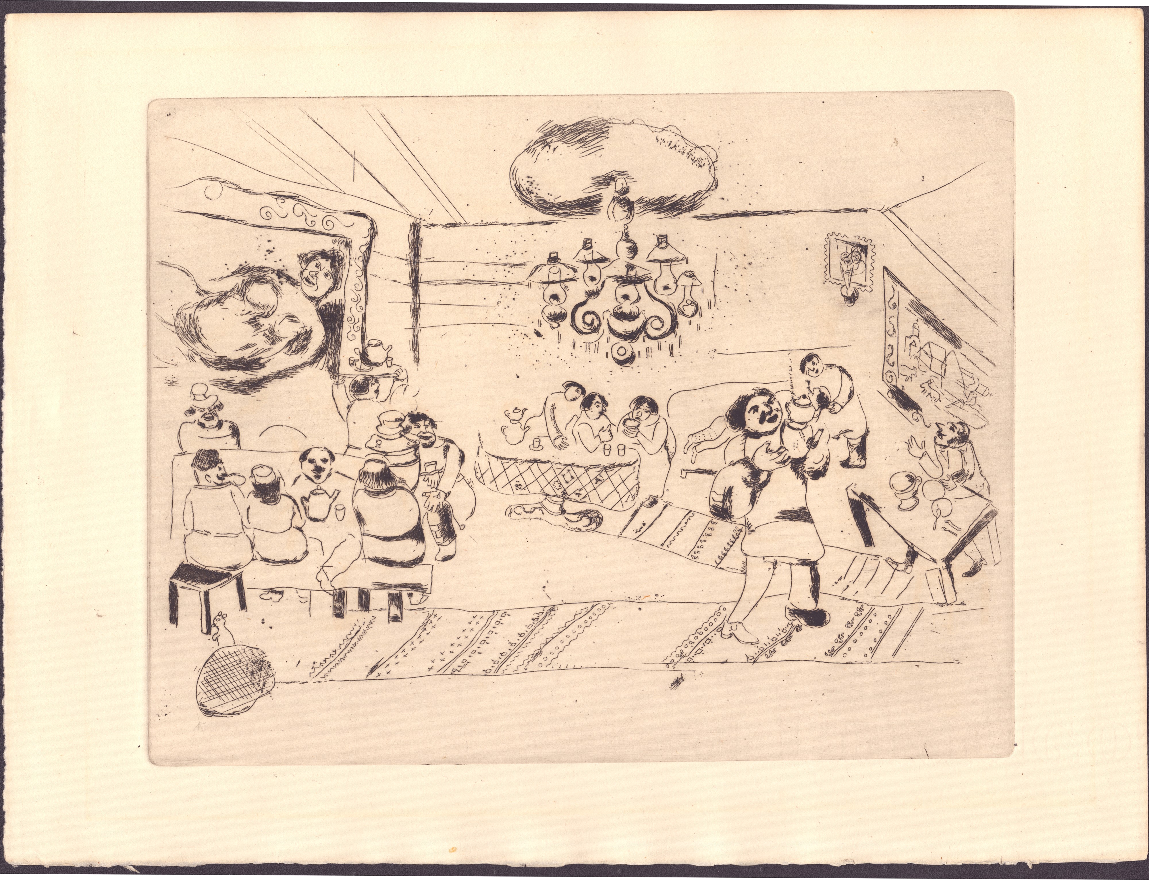 Acquaforte, 220 x 287 mm (lastra), 260 x 340 mm. Tavola n. 2 dalla serie di illustrazioni per "Le anime morte" di Nikolaj Gogol.