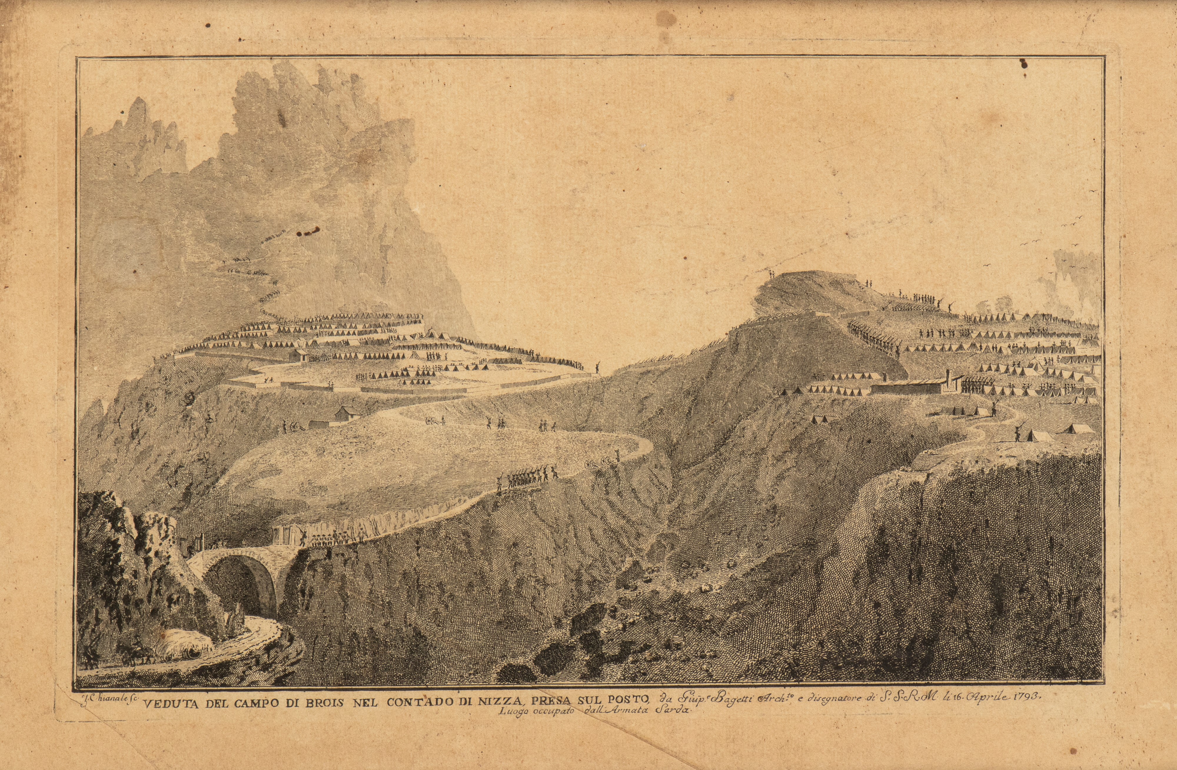 View of Saorge | View of the Brois Field, by Giuseppe Pietro Bagetti, 1793