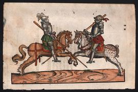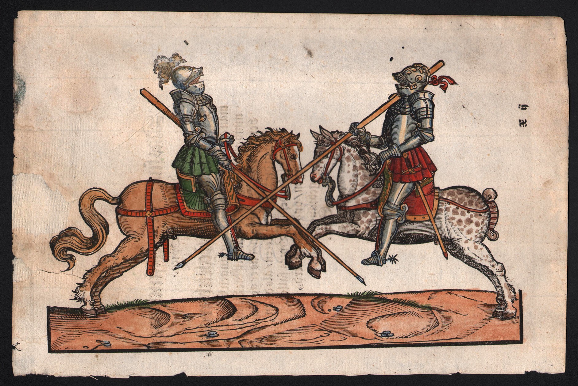 Woodcut, approx. 202 x 307 mm. (each sheet). Three woodcuts taken from Federico Grisone’s work “Hippokomike. Kunstlicher Bericht und allerzierlichste Beschreybung des Edlen, Vesthen und Hochberühmten…”, first published in Augsburg by Michael Manger in 1570.
