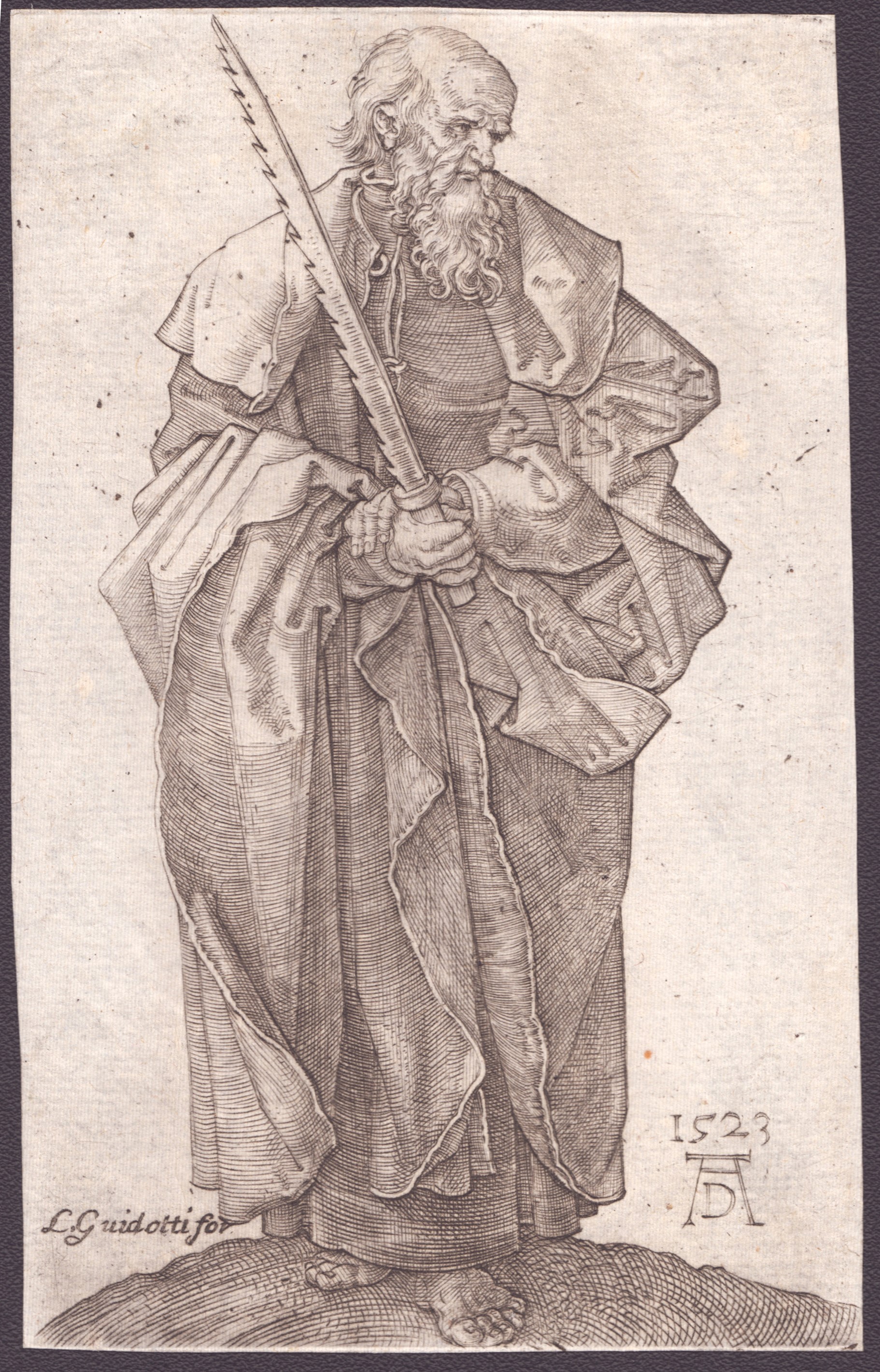Engraving, 117 x 75 mm. Edition from the second half of the 18th century, with the address of the Bolognese publisher Luigi Guidotti. Meder 49. F. Pellegrini, Dürer e dintorni..., Milan 1993, cat. 7.