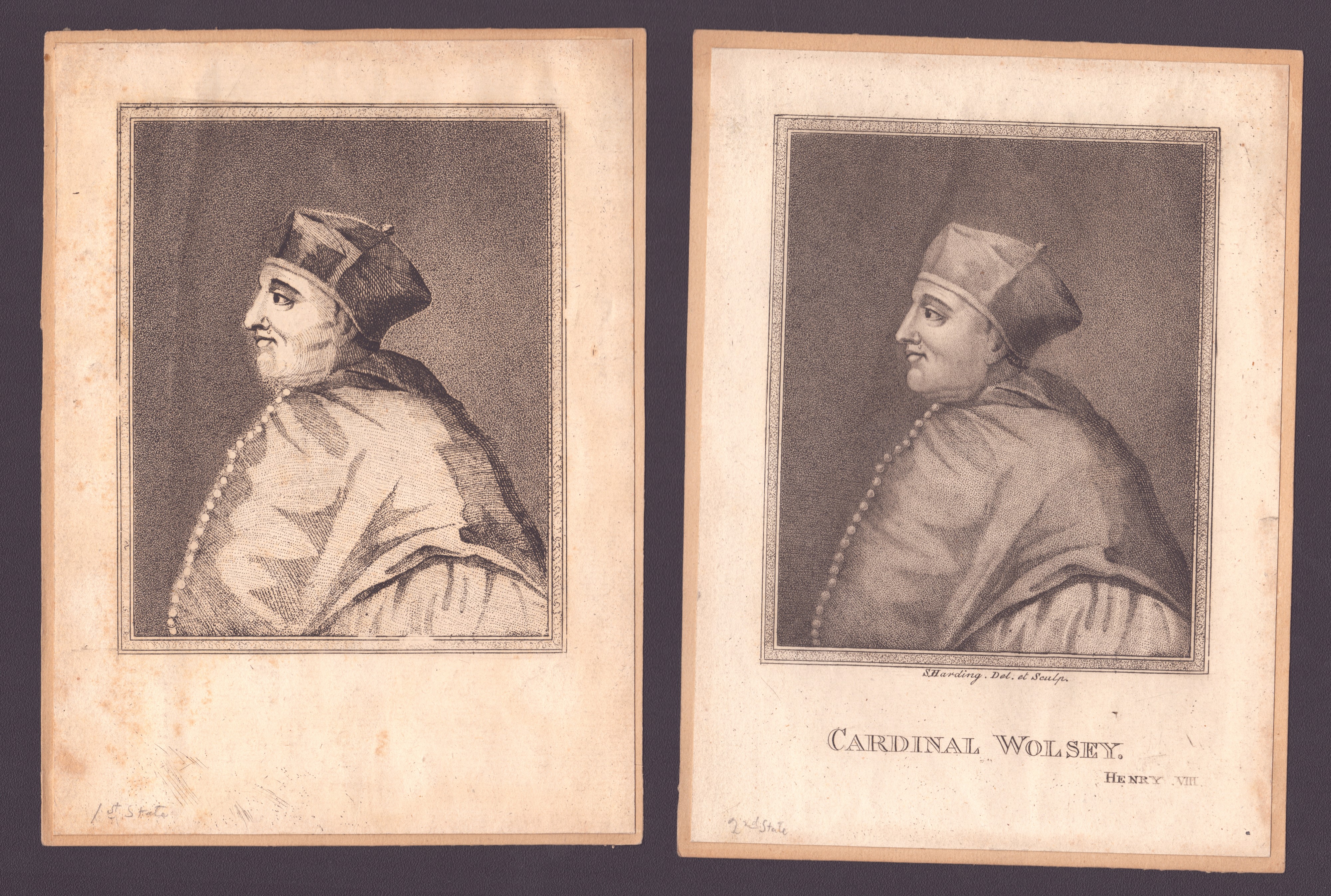 Stipple (stipple engraving), 185 x 135 mm (each sheet). Lot of two states: State I, proof before the letter, with unfinished stipple, and State II, proof with the letter, finished. O'Donoghue 20.
