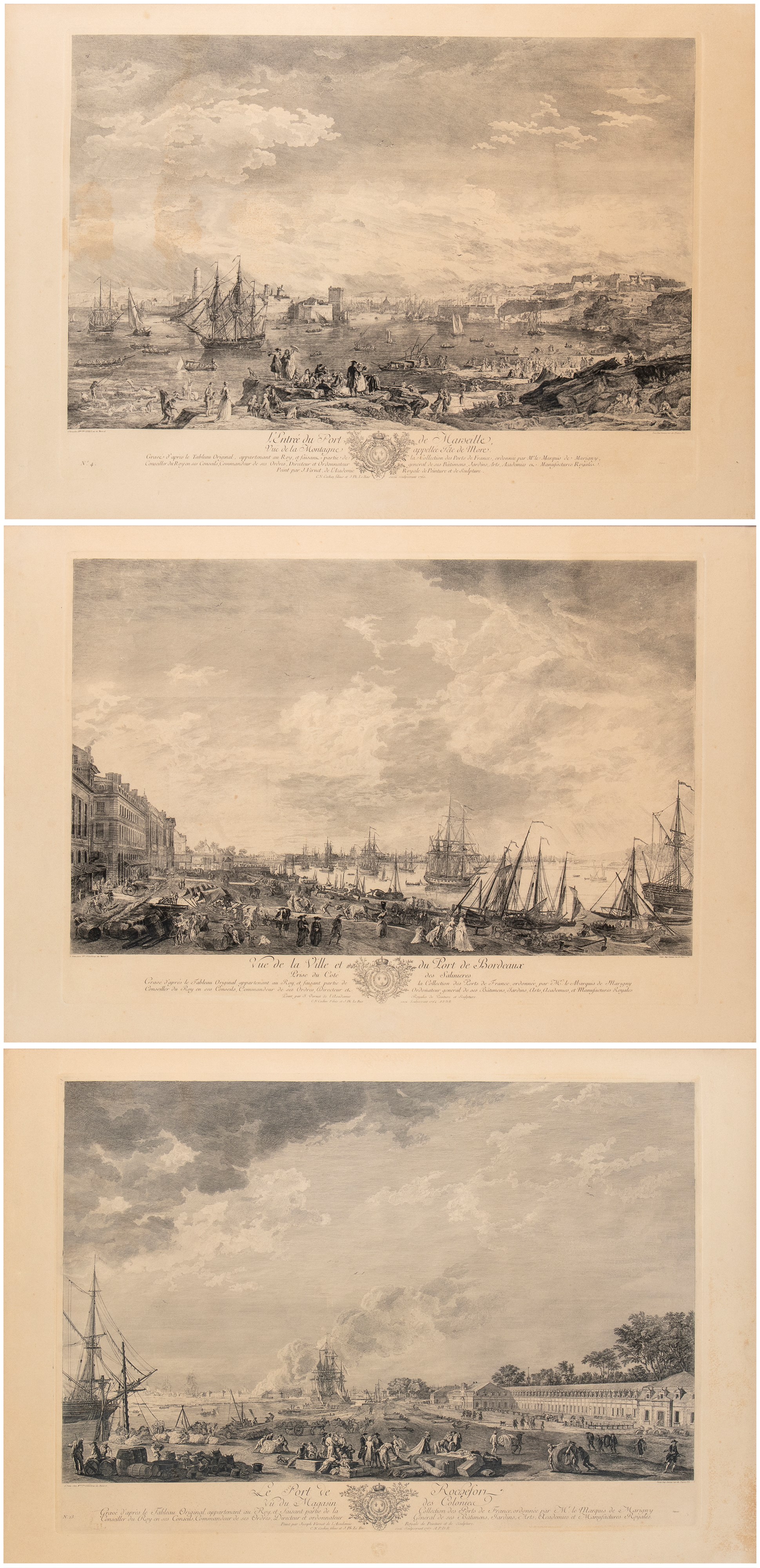 The entrance to the port of Marseille | Le port de Rochefort | Vue de la Ville et du Port de Bordeaux | Le Port de Cette en Languedoc