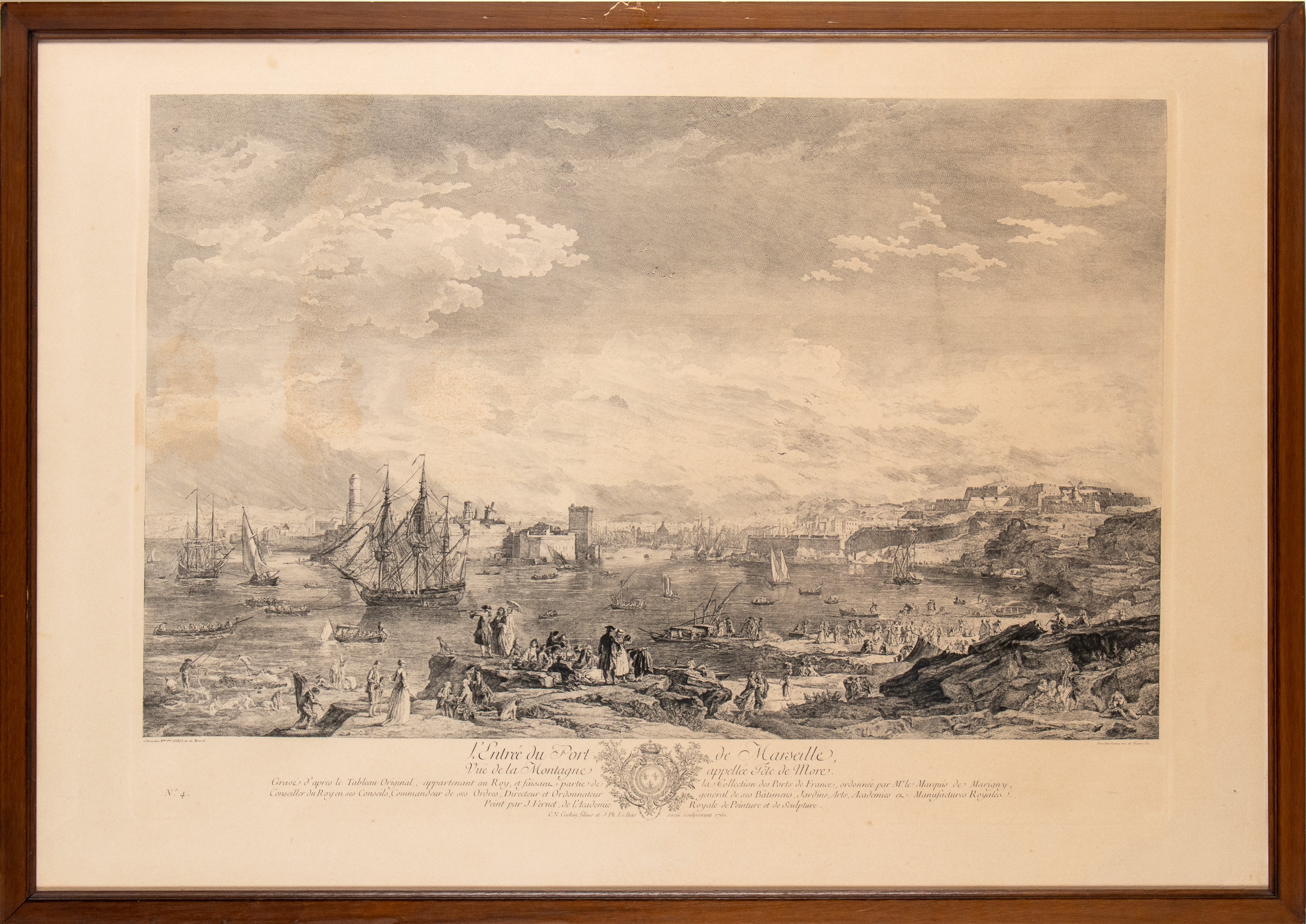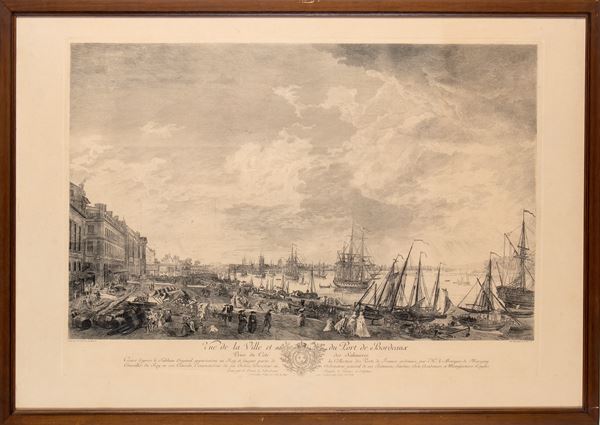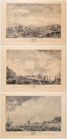 Lot of four large engravings from the series of six "Les Ports de mer de la France", taken from the paintings by Joseph Vernet commissioned by King Louis XV