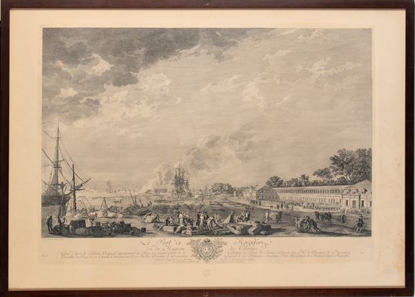 Fine impressions on unlaid Arches paper. Two sheets with blind stamps from Chalcographie du Louvre (Lugt 1695a). Overall in excellent condition, except for uniform browning and the stains on the right margin of Le port de Rochefort.