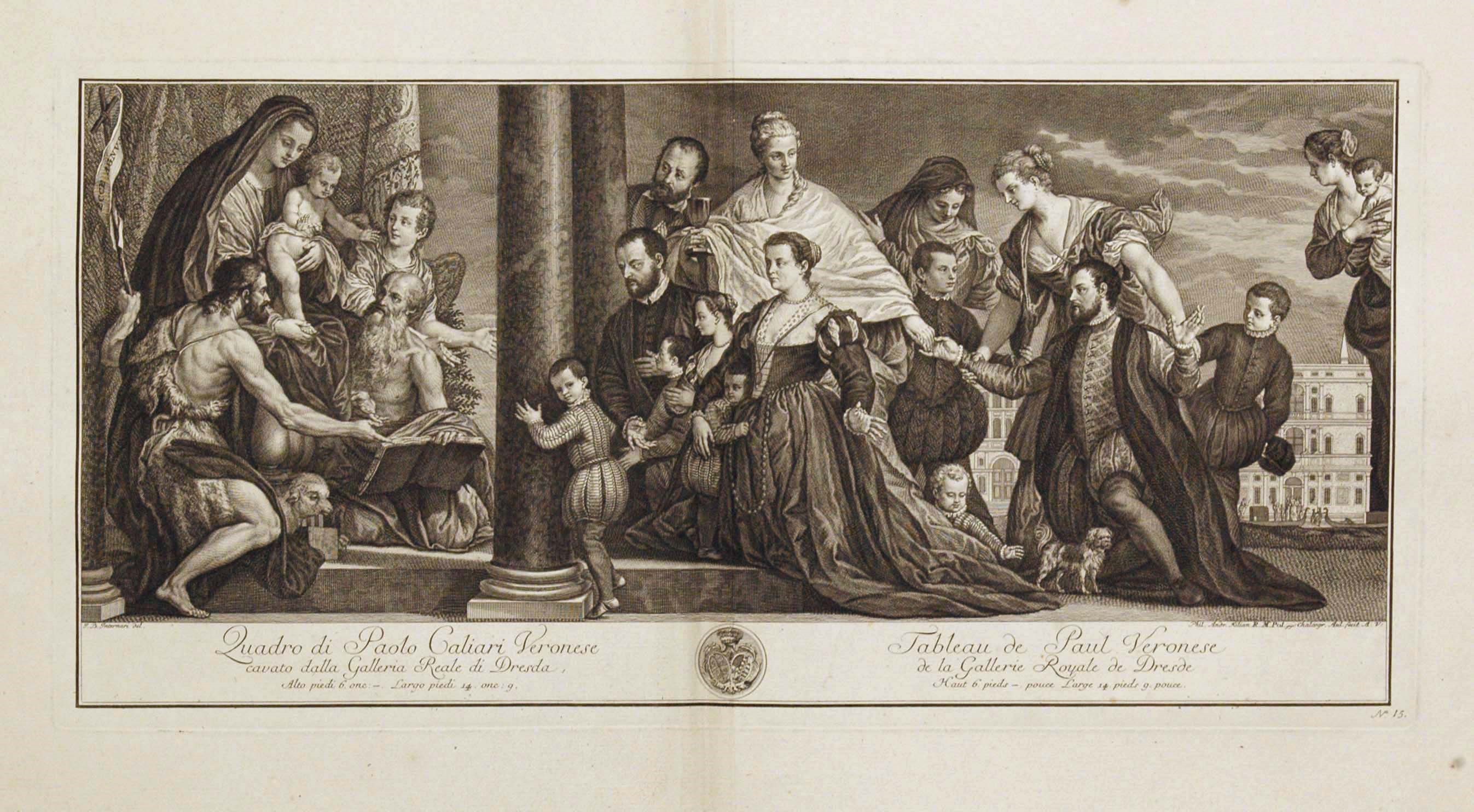 Burin and etching, 278 x 578 mm (plate), approx. 760 x 1000 mm (sheet). Plate from the collection "Recueil d'estampes d'après les most célèbres tableaux de la Galerie Royale de Dresde".