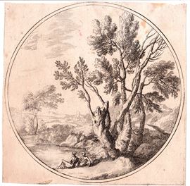 Very fine impressions on laid paper, two copies on watermarked paper. The copies are trimmed, but overall in excellent condition except for a few stains. "Landscape with Two Standing Figures" has small, preserved margins, but has a patched loss at the top and a trace of a central vertical fold.