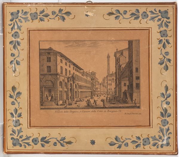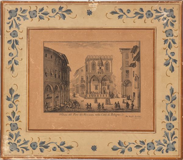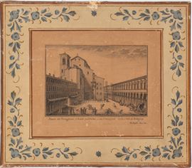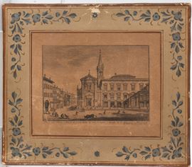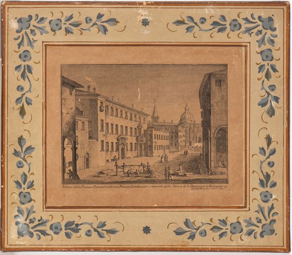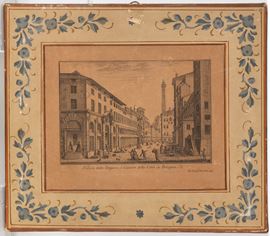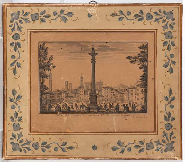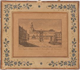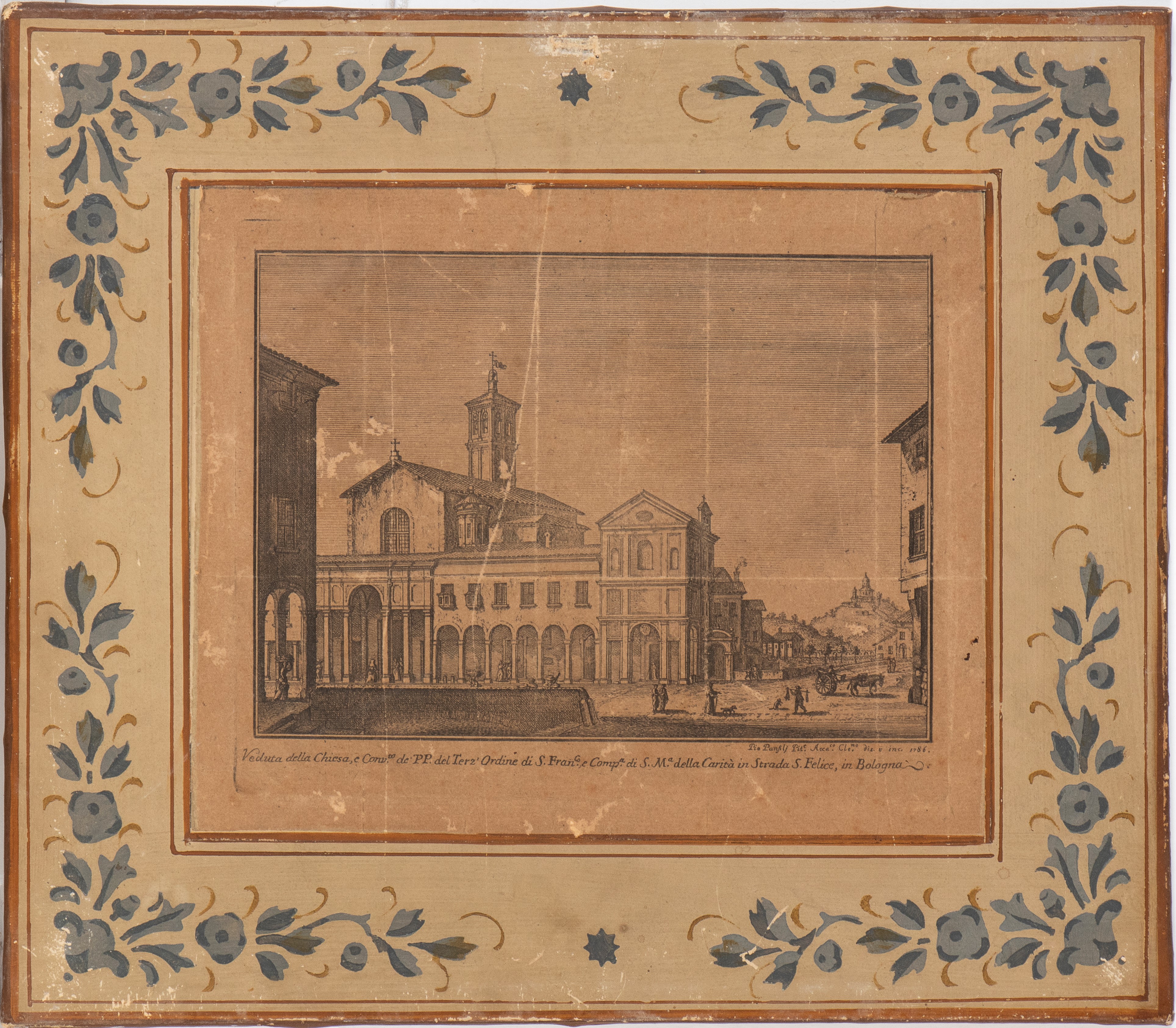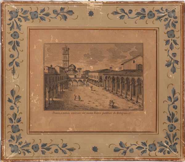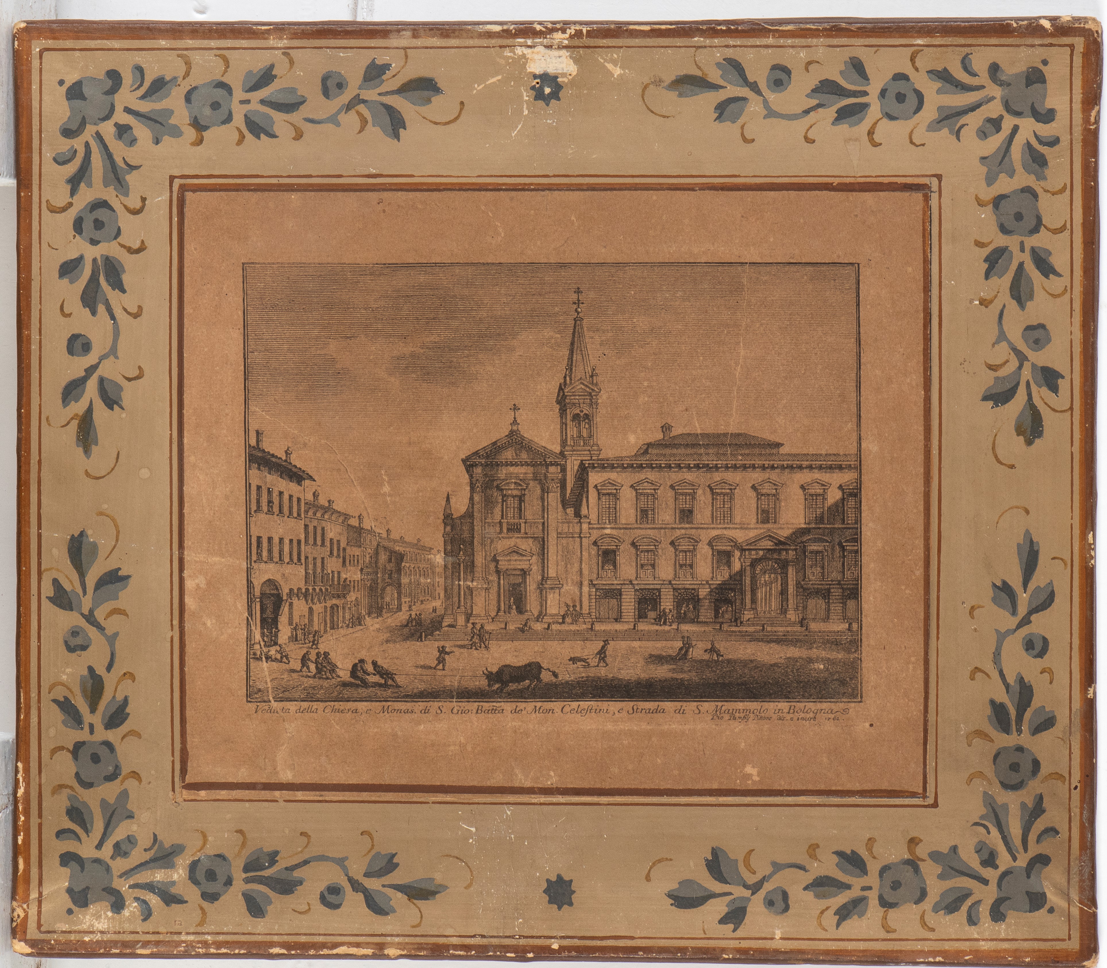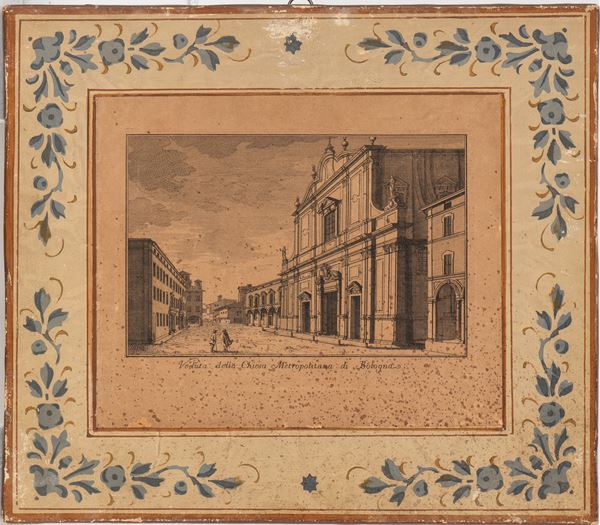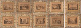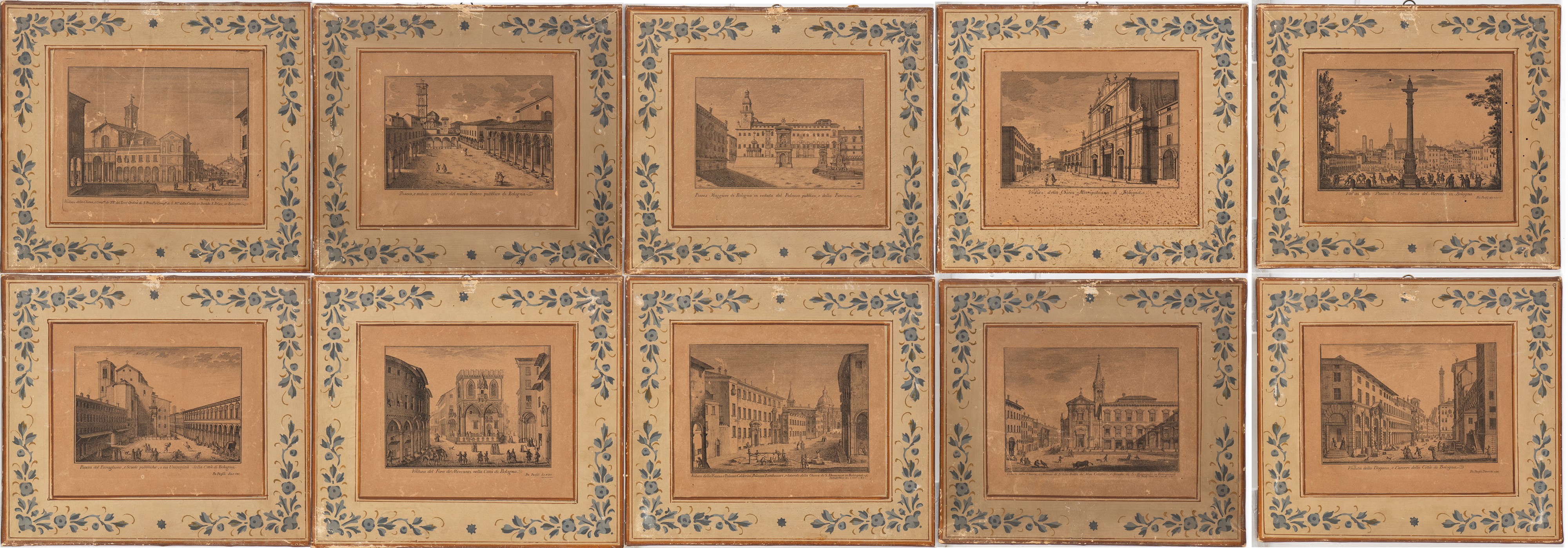 Lot of ten engravings with views of churches and squares in Biology. Etching, approx. 190 x 230 mm (each sheet).