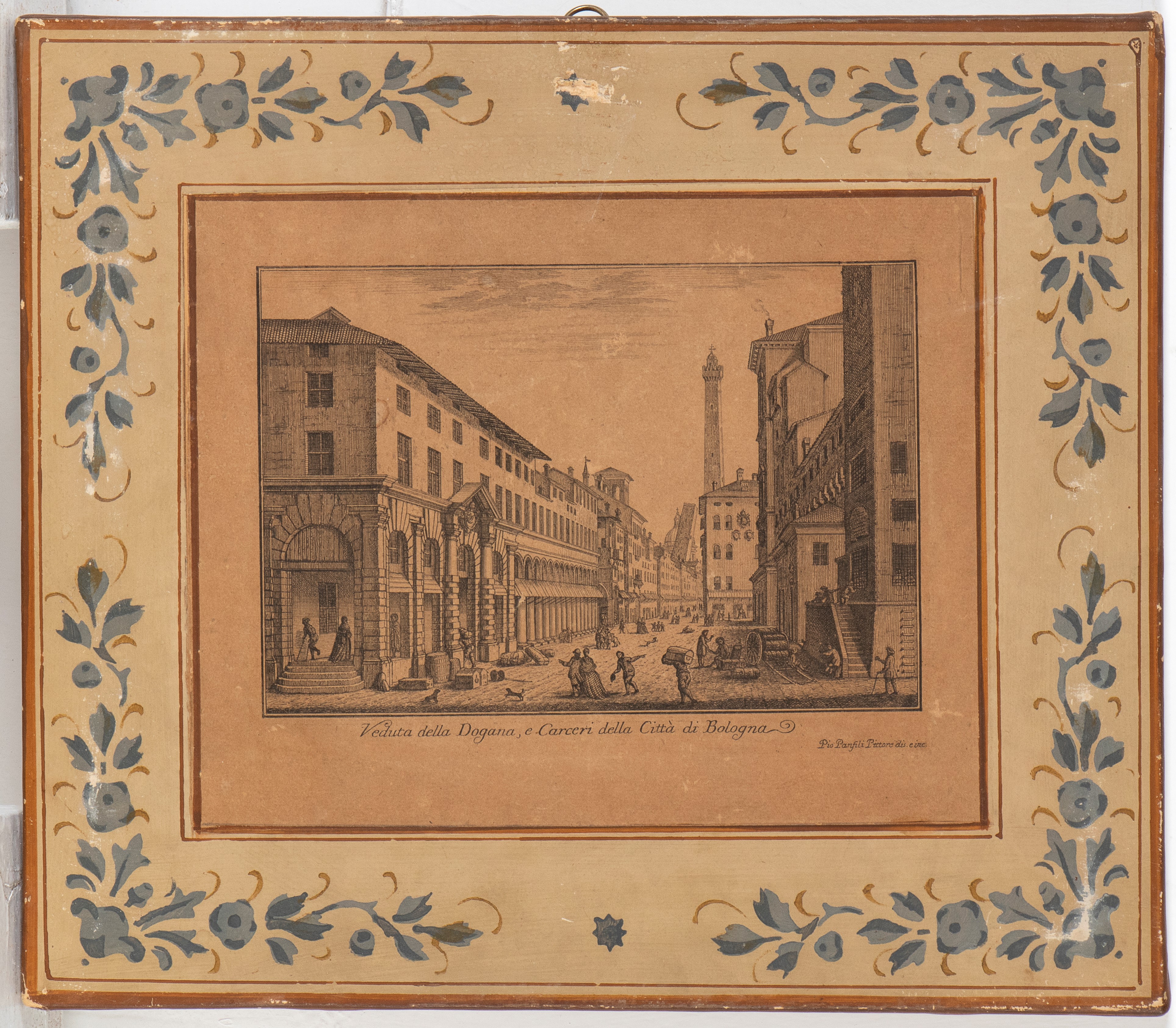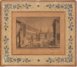 Printed on laid paper. Each sheet is backed with a period mountboard, hand-painted with floral motifs. The paper is uniformly browned, some with small defects such as abrasions and stains.
