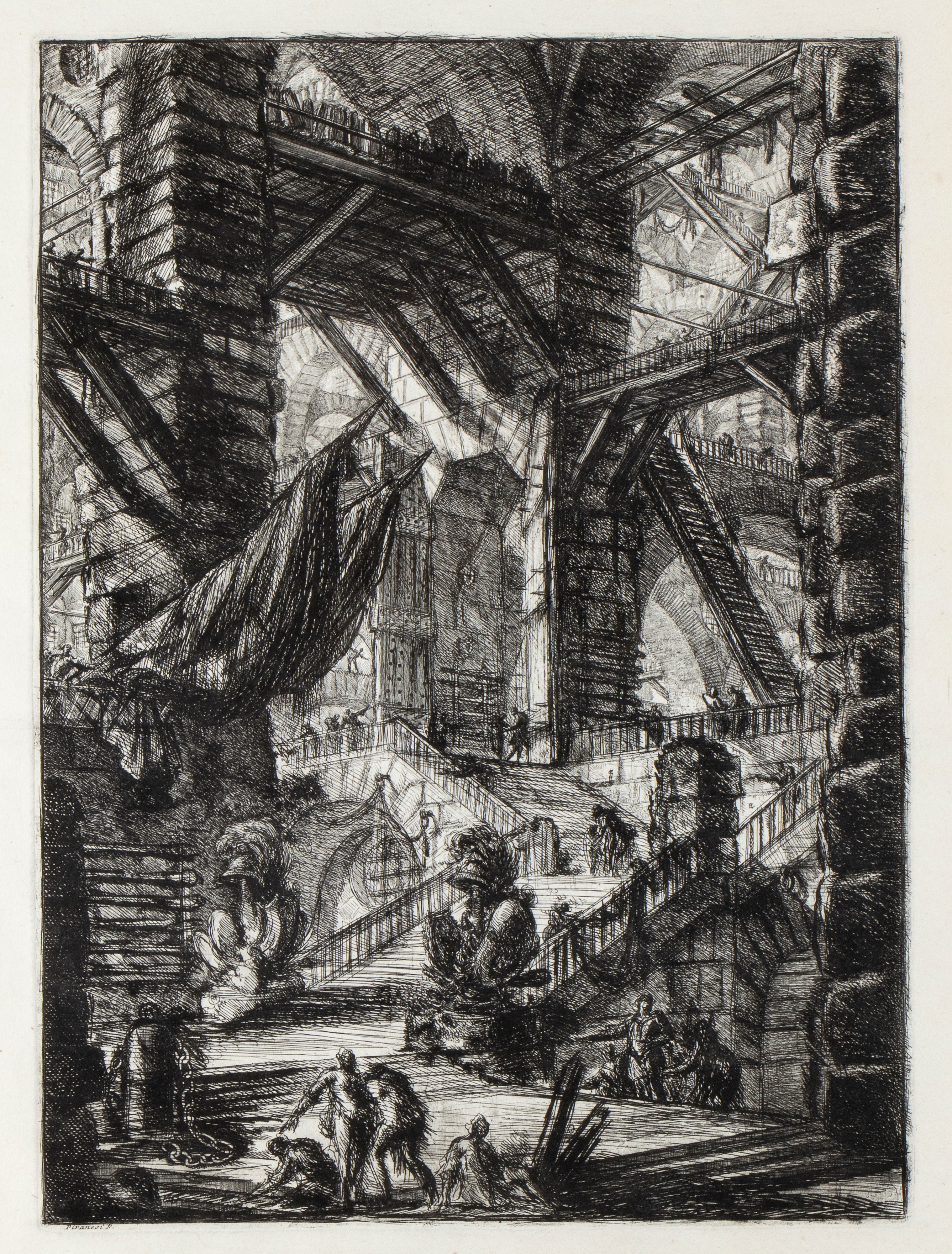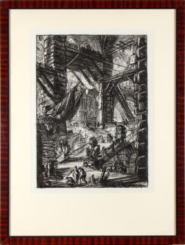 Etching, 556 x 401 mm (plate). 2nd of 3 editions, published by Piranesi himself, with a Roman numeral at top right. Hind 8.