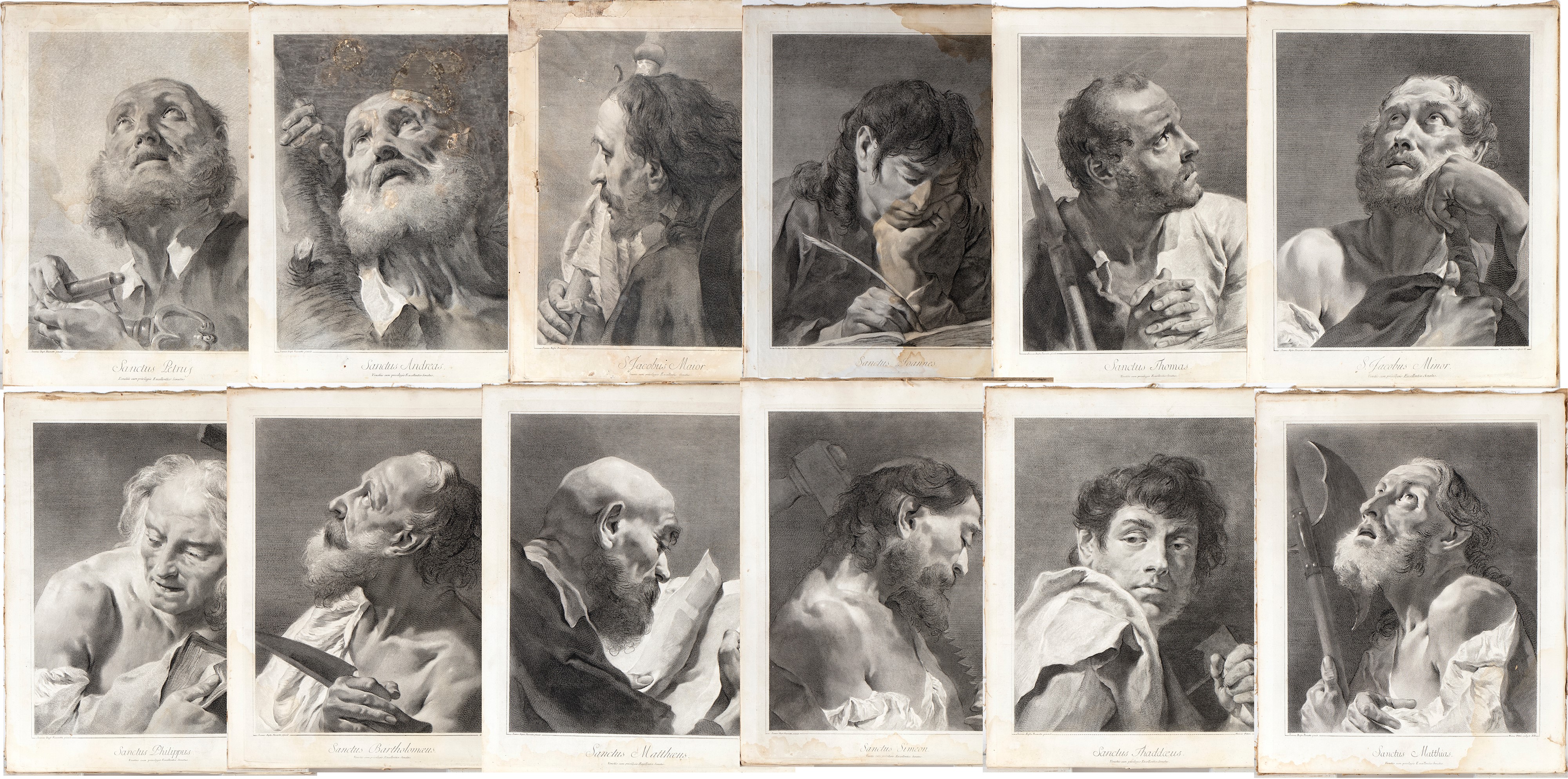 Complete series of twelve engravings depicting the apostles, based on paintings by Piazzetta. Engraving, approx. 470 x 375 mm (each sheet)