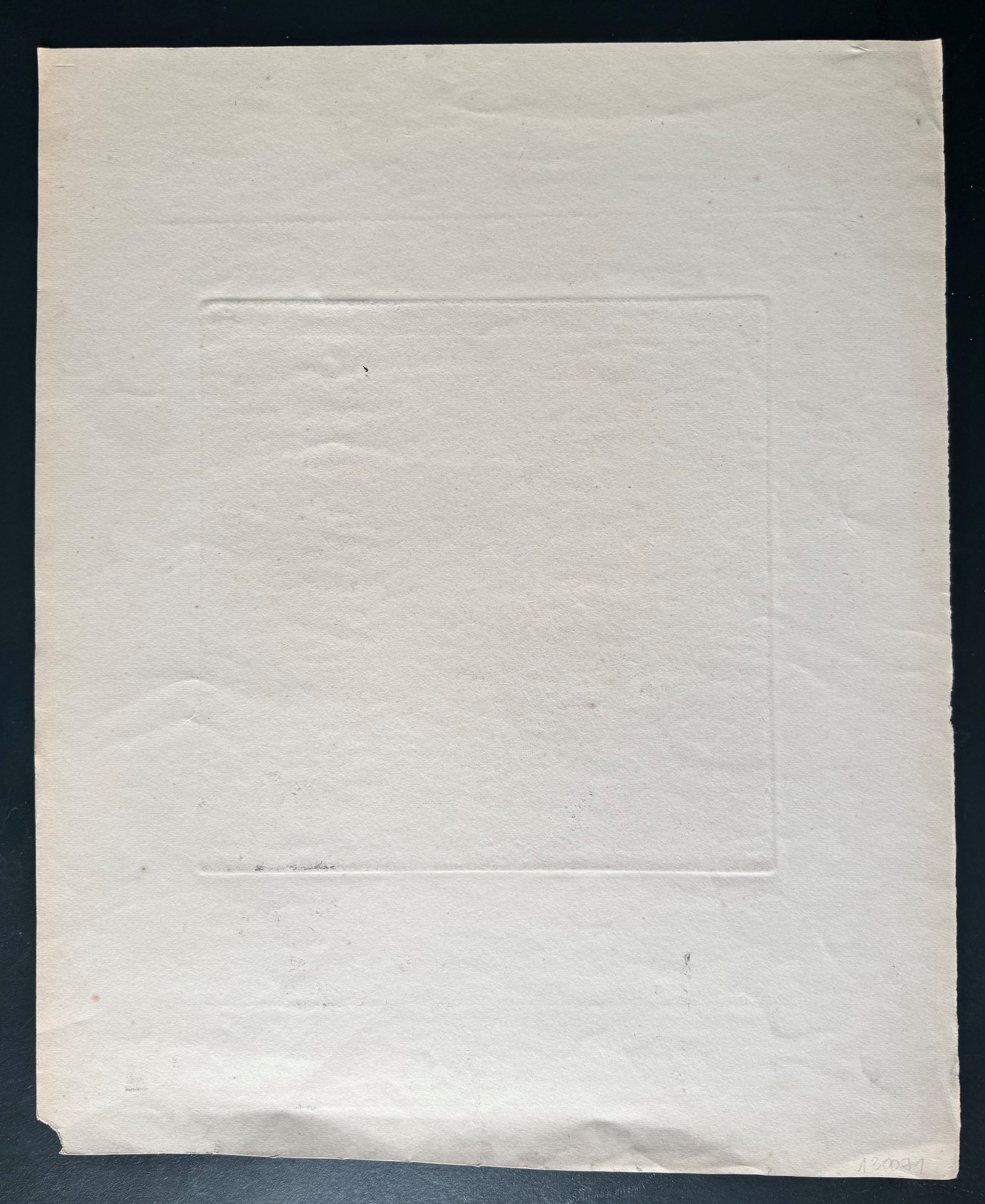 Bella impressione dai forti toni di chiaroscuro, stampata su carta non vergata. Manca l’angolo inferiore destro.