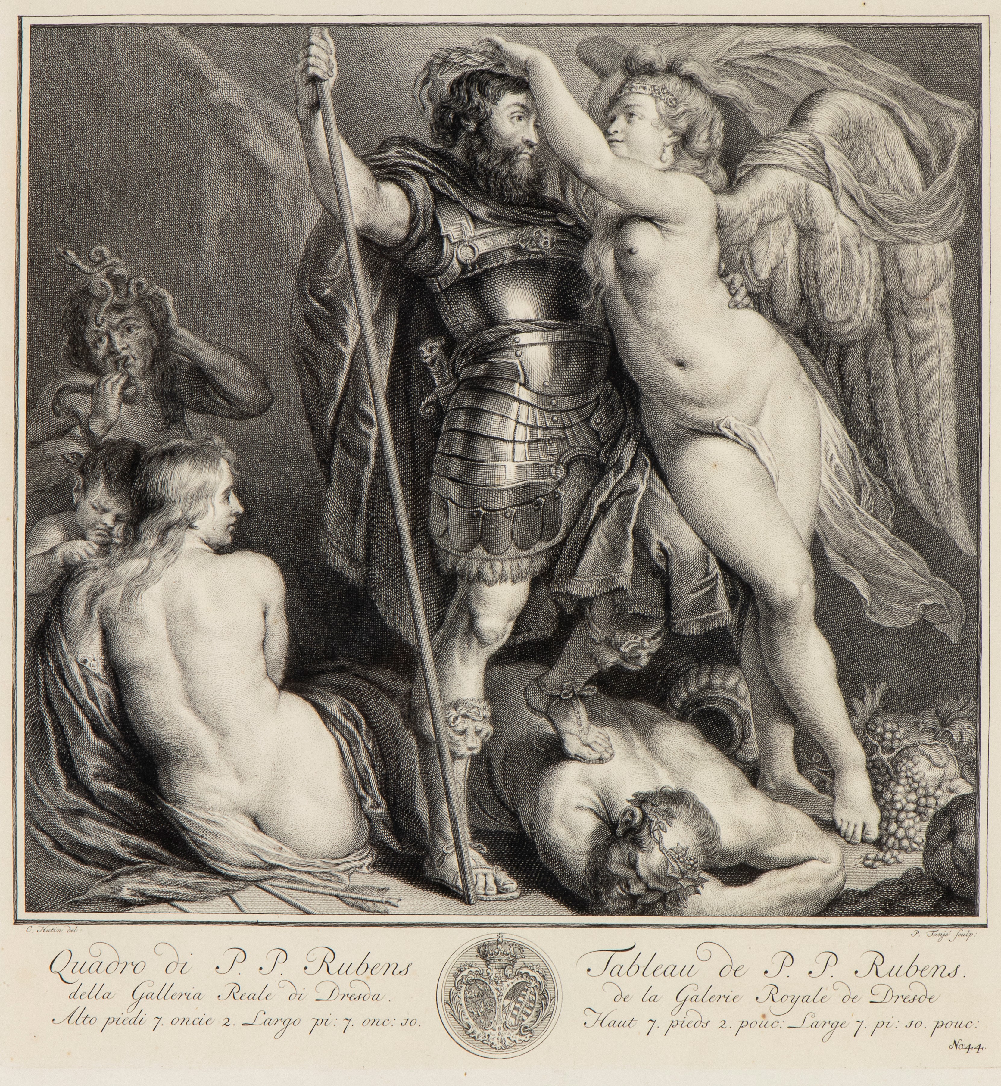 Plate taken from Recueil d'estampes d'après les most célèbres tableaux de la Galerie Royale de Dresde. Etching and burin, approx. 680 x 520 mm. (sheet).