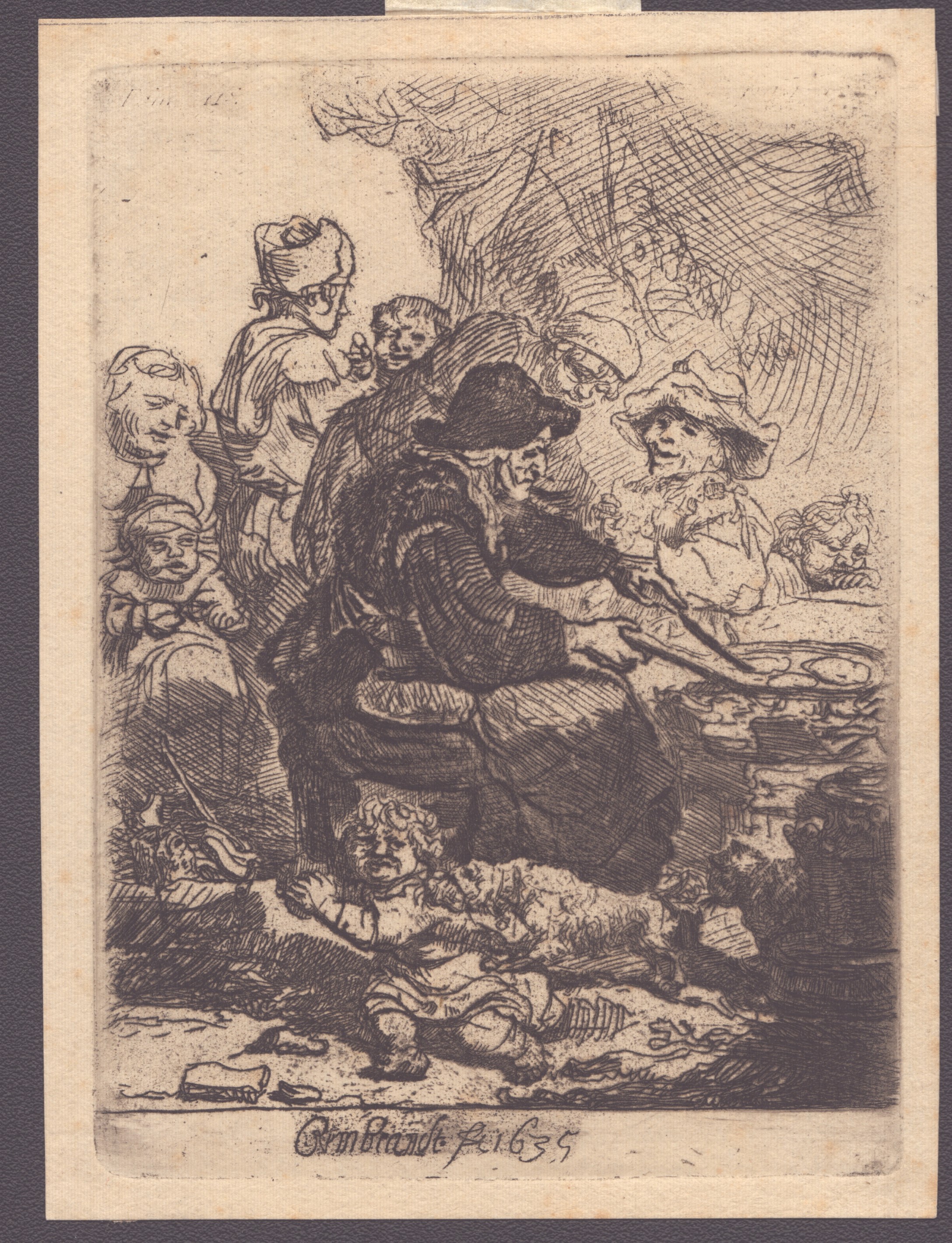 Etching, 108 x 77 mm (plate), 116 x 87 mm (sheet). VII, posthumous state, with some parts redrawn by Henri Louis Basan; published by him around 1810. New Hollstein 144.