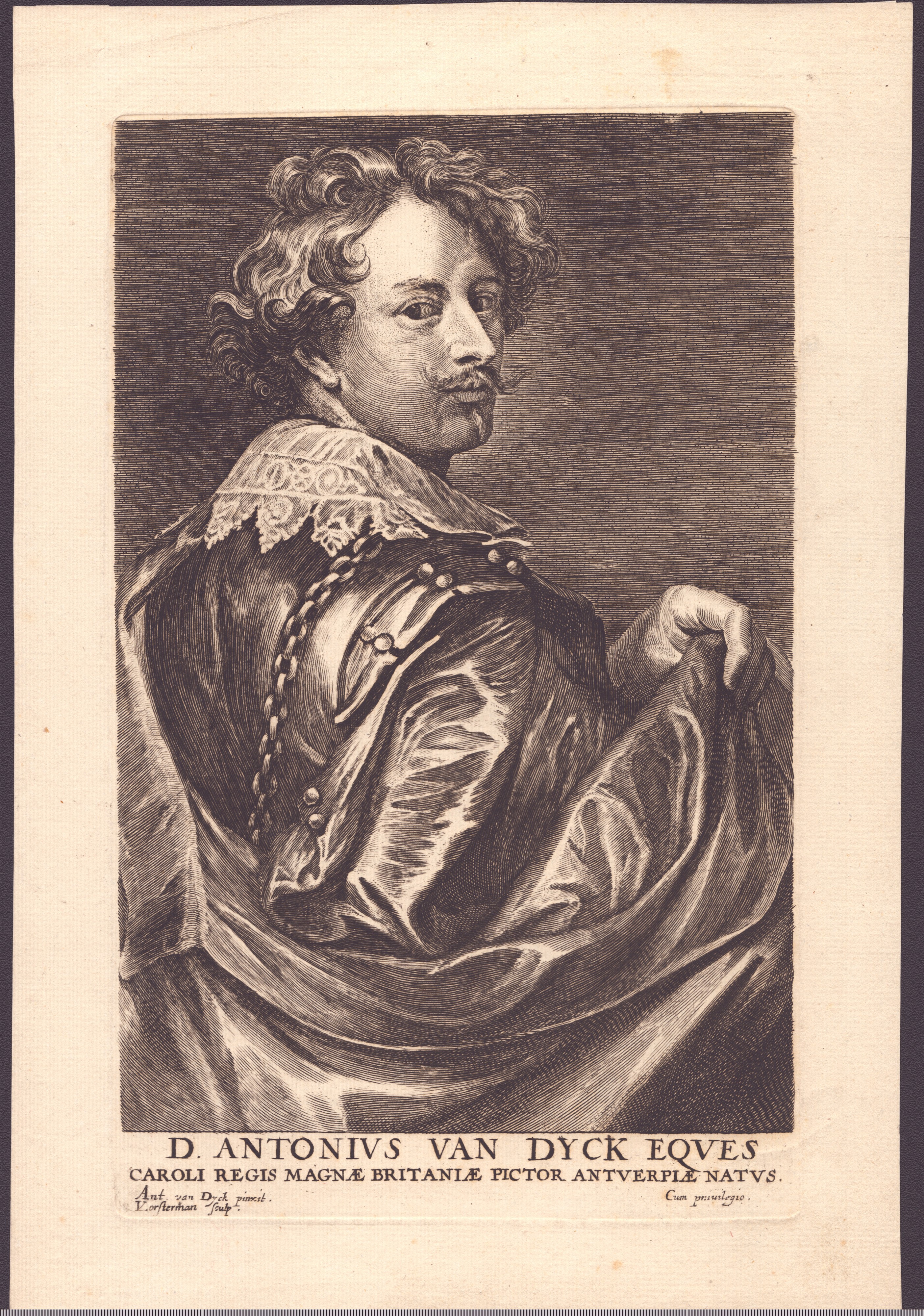 Burin, 251 x 156 mm (plate), 300 x 204 mm (sheet).  From a self-portrait by Anton van Dyck, taken from the collection "Icones principum, virorum, doctorum, pictorum, chalcographorum".