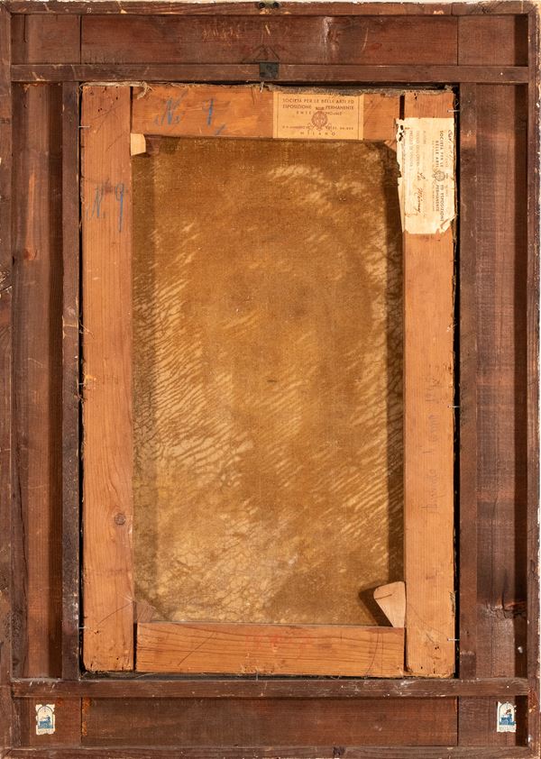 Signed bottom left: L. Bazzaro. On the back, two labels from the Società per le Belle Arti ed Esposizione Permanente, Milan