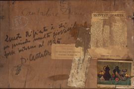 On the back, the artist’s declaration of authenticity and label of the VIII° Nazionale di Arte Figurativa, Imola, September 24 – October 24, 1966