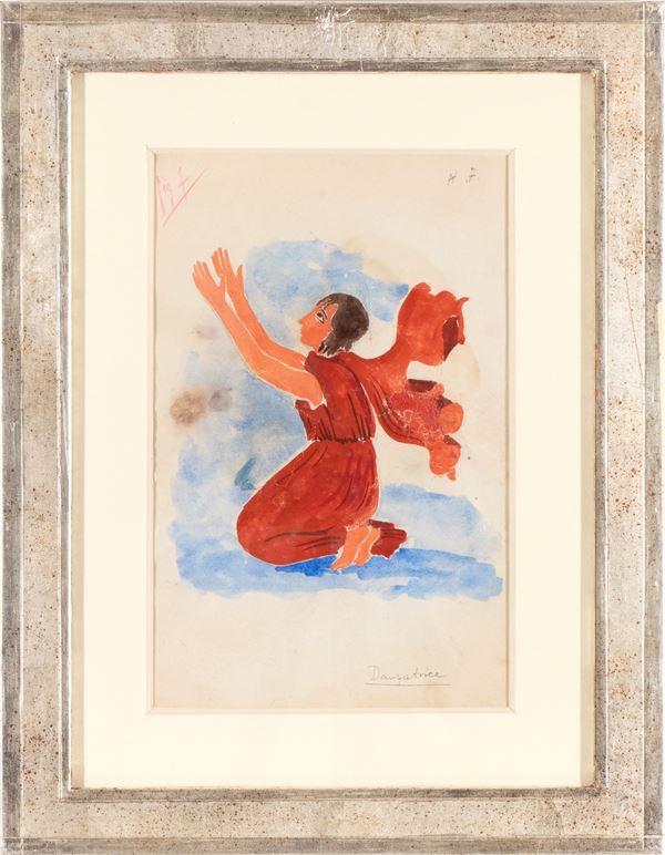 Tempera made by Casorati as set and costume designer of the opera βHecubaβ from Euripides. Lyrical tragedy composed by Gian Francesco Malipiero and directed by Tullio Serafin staged only at the Teatro Reale dell'Opera in Rome in January 1941
