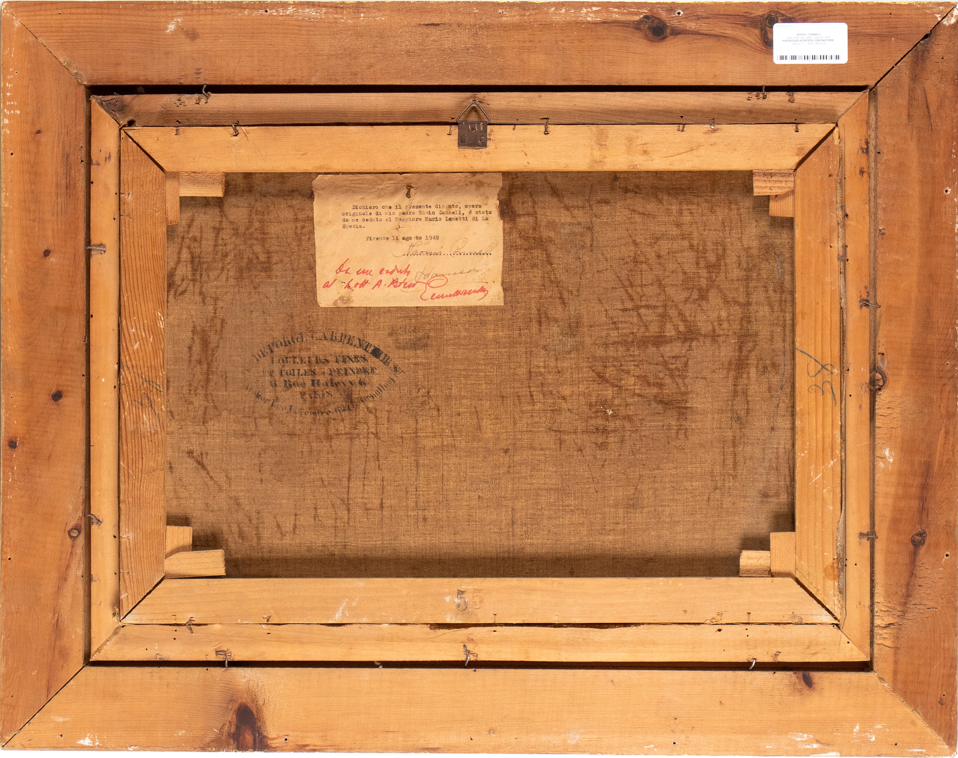 On the back, certificate of authenticity from the artist's daughter, Naomi Connell, dated 1949