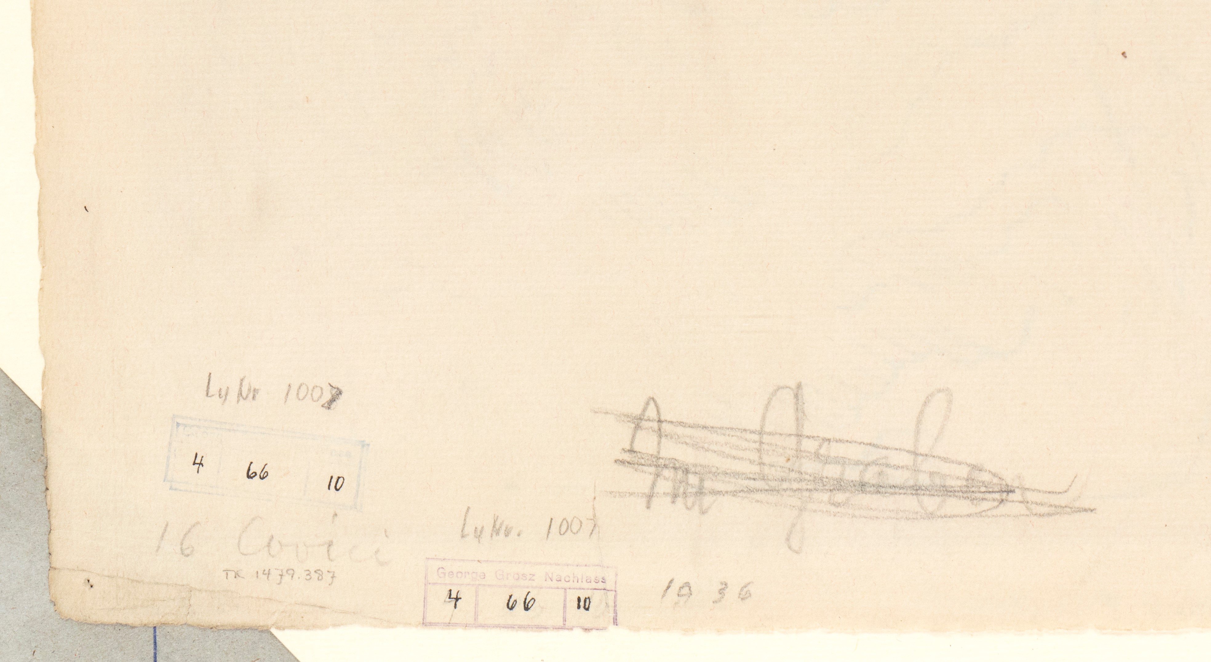 Signed bottom right: Grosz. On the back, stamp: George Grosz Nachlass no. 4 / 66 / 10