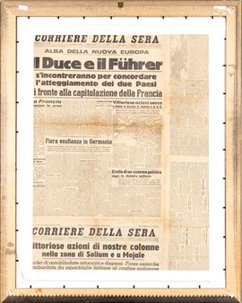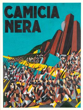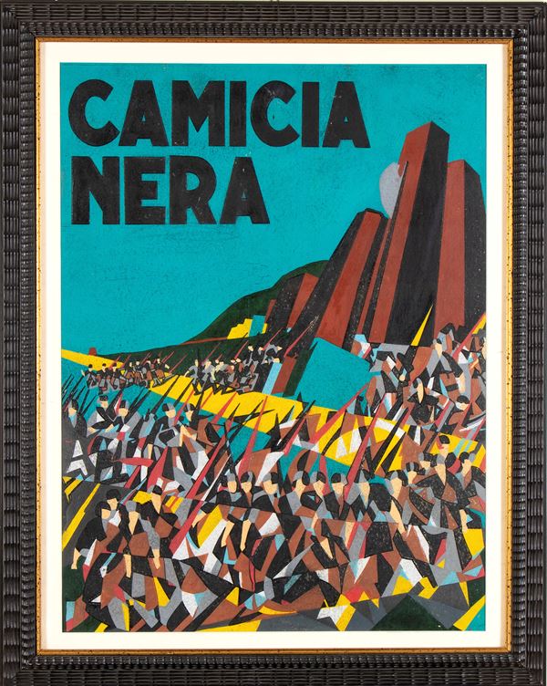 On the back: a 1940 page from Corriere della Sera newspaper. Excerpt from the authentication of Archivio Tato: [...] This is a sketch for a propaganda poster, the publication of which is unknown. Dedicated to the Corpo Ausiliario della Squadre d'Azione delle Camicie Nere".