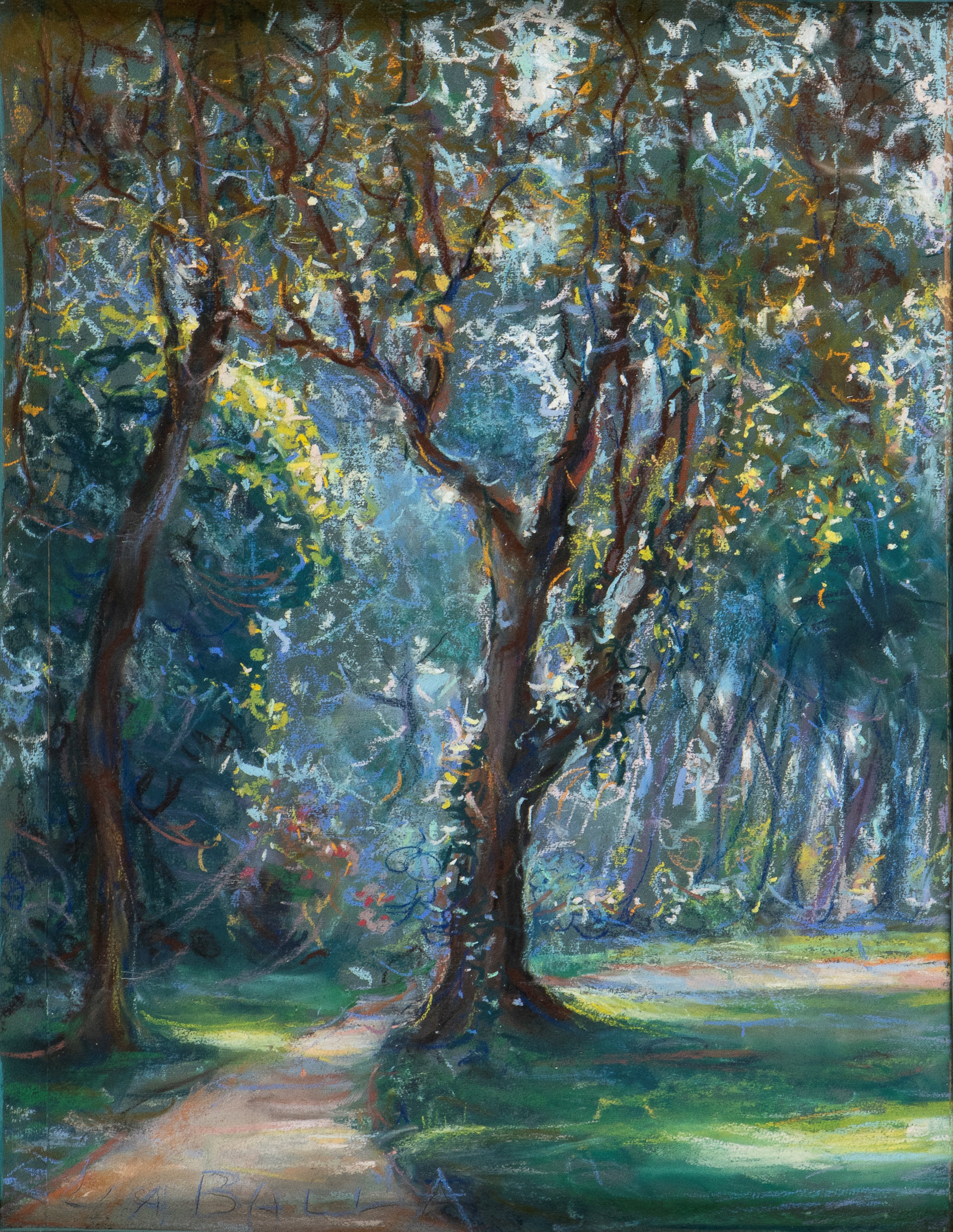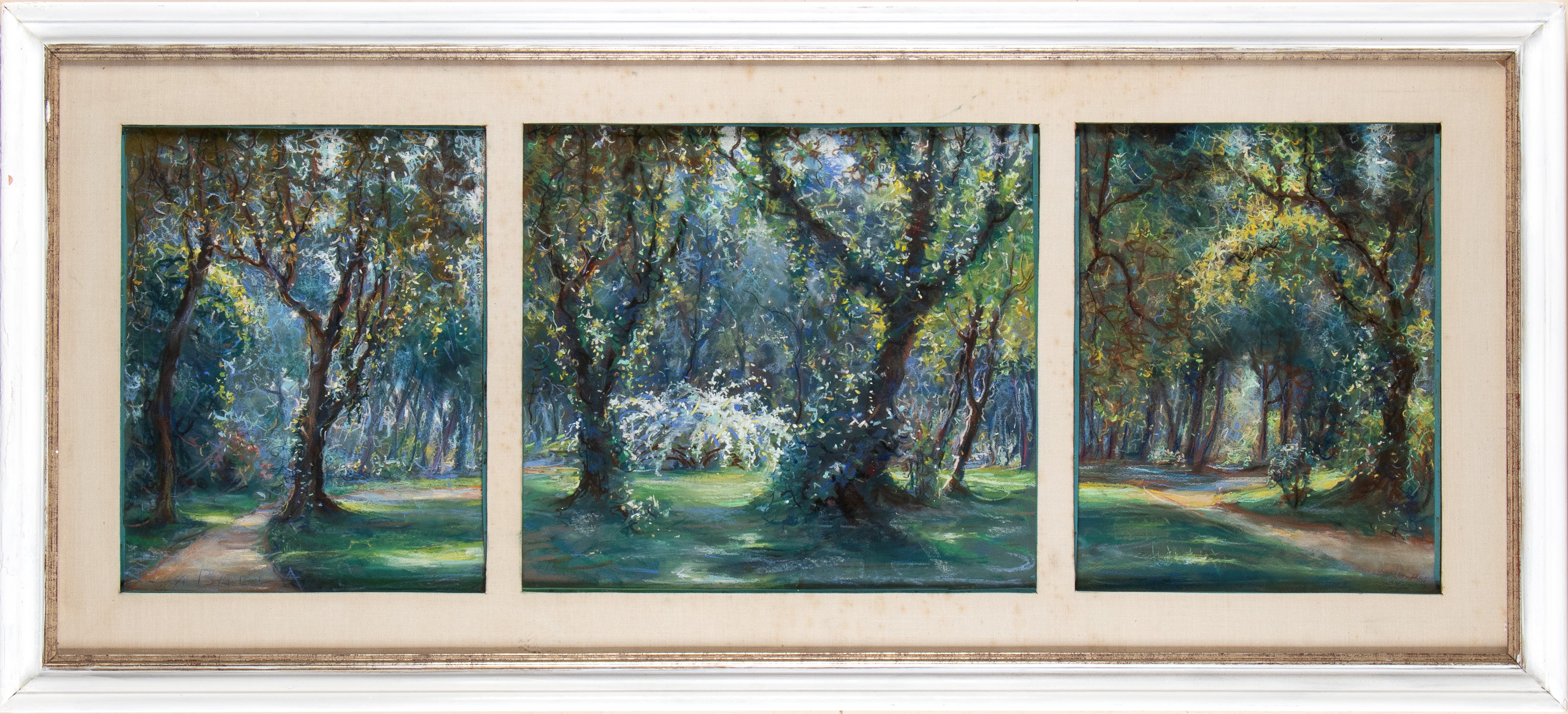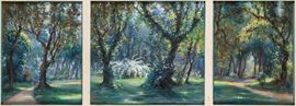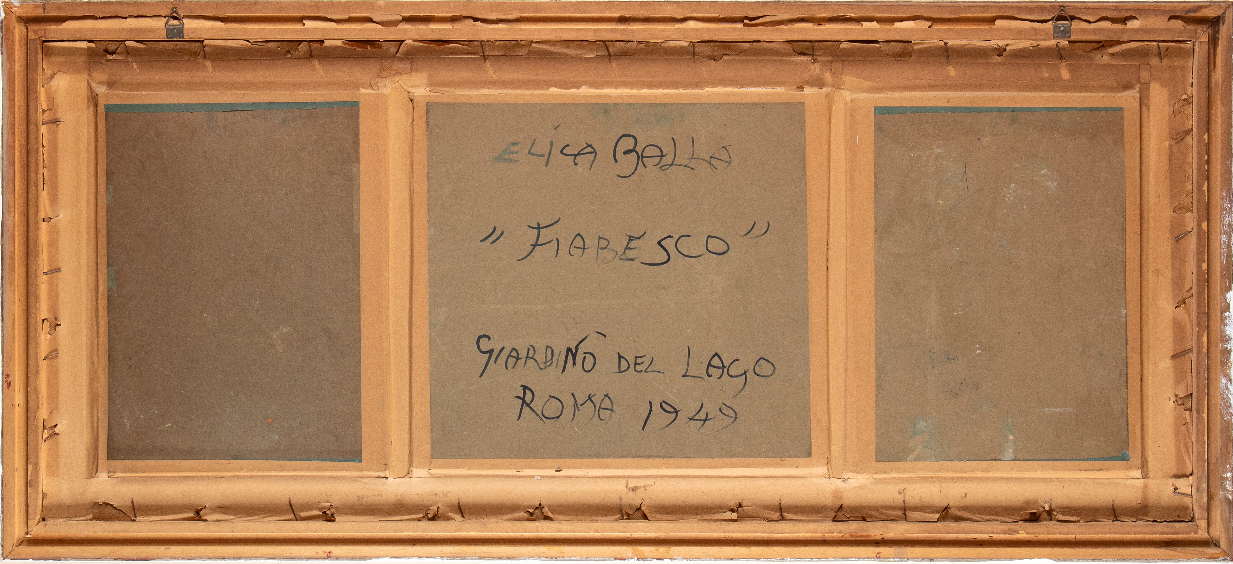 Triptych composed bt three cardboards signed and dated lower right: Elica Balla. Signed and dated on the back: Elica Balla, Fiabesco, Giardino del Lago, Roma 1949. Cardboards dimensions: 44 x 34 cm, 44 x 49 cm, 44 x 35 cm
