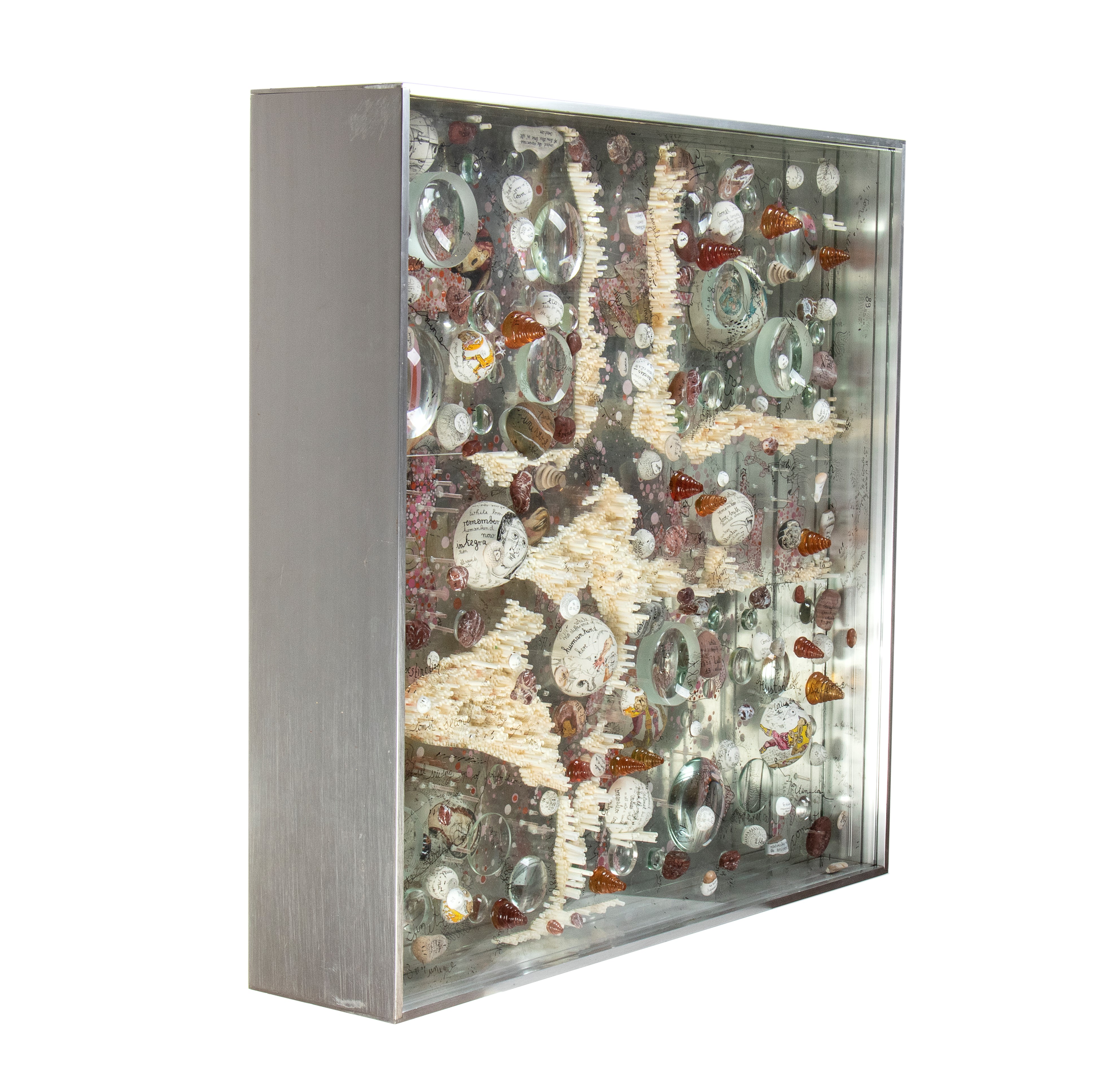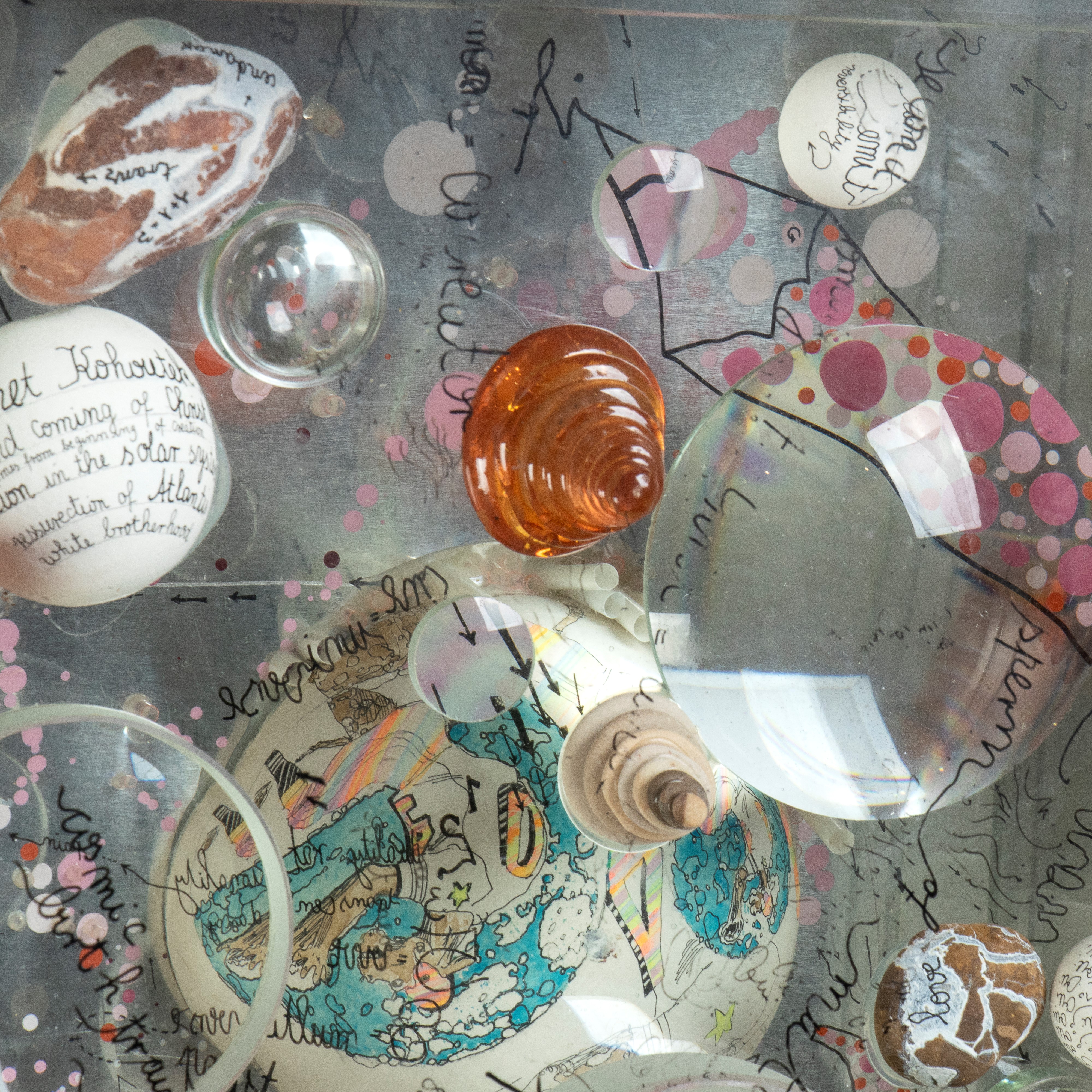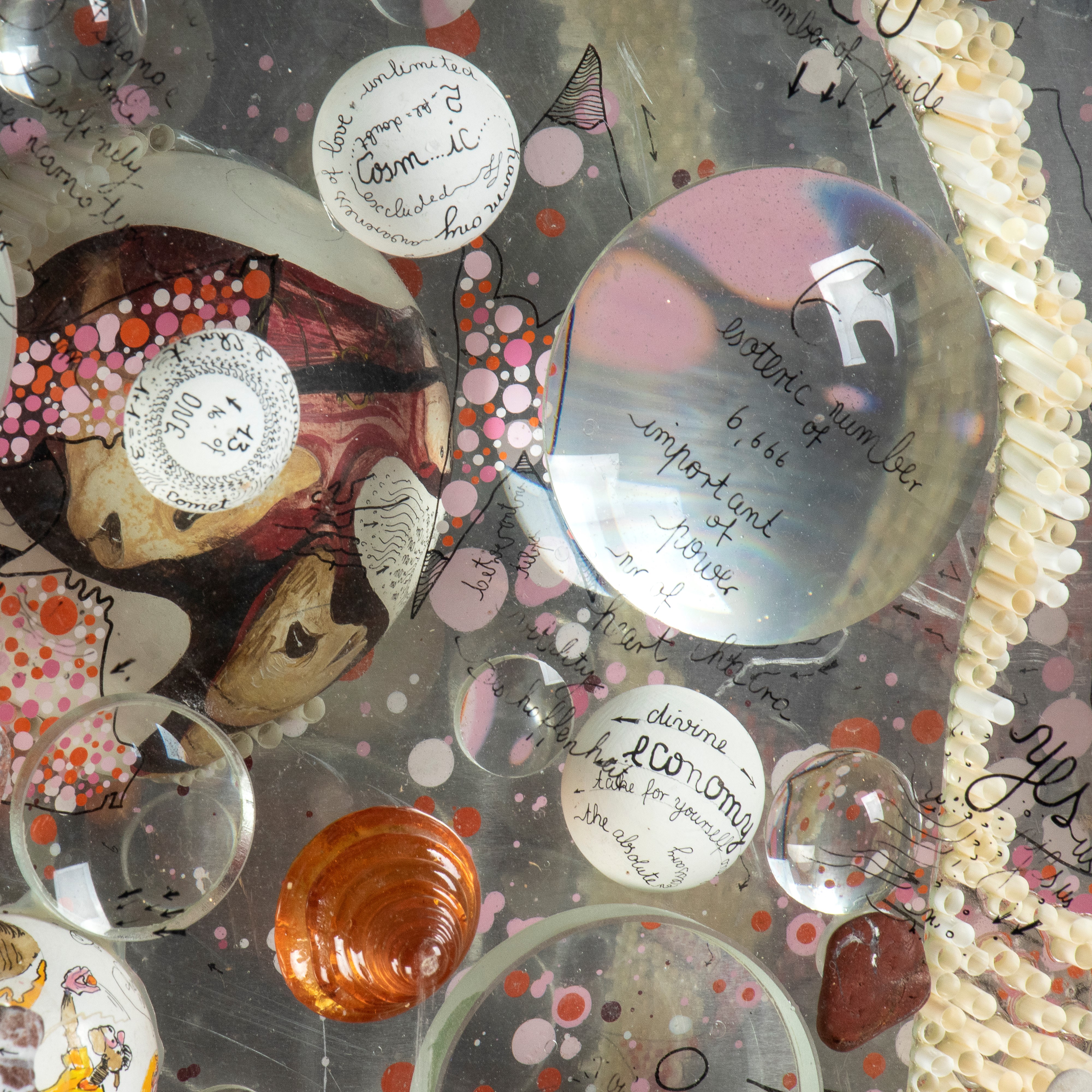 Mixed media (ink, glass, glass lens, wood, casein, tempera, plastic)