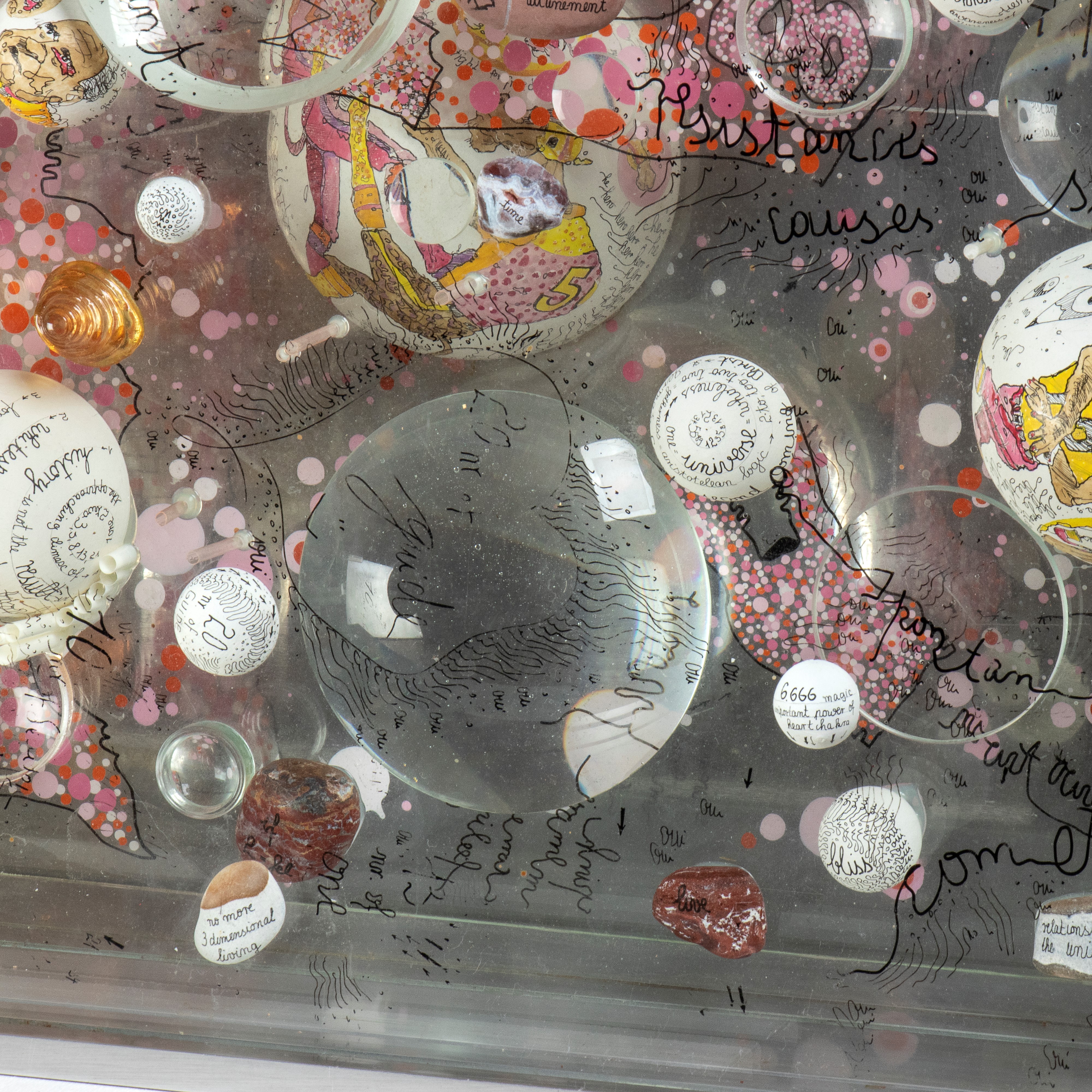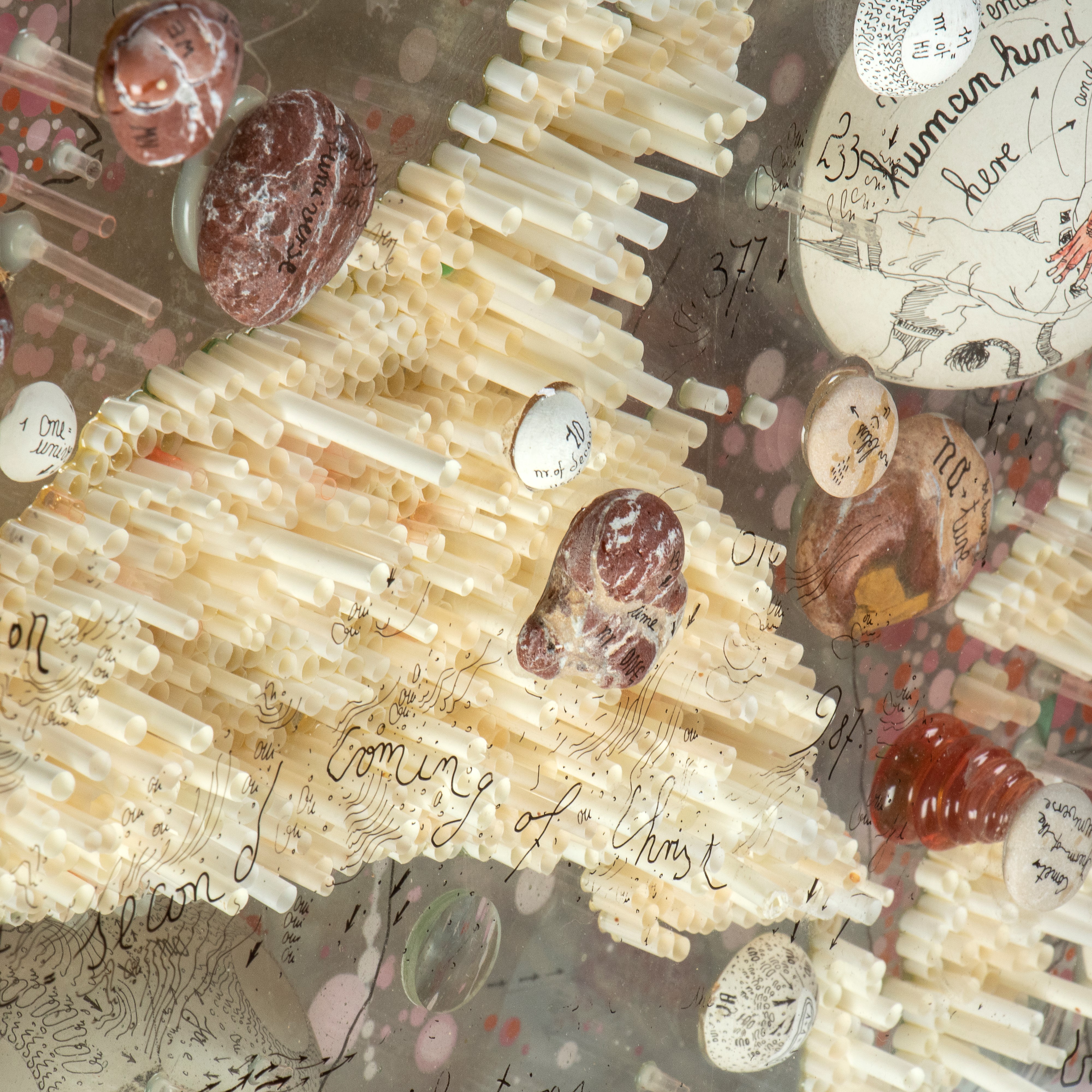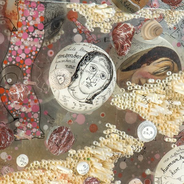 Mixed media (ink, glass, glass lens, wood, casein, tempera, plastic)