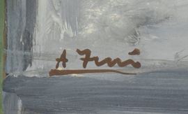 Signed lower left: A. Funi. On the back stamp from Galleria Ghelfi of Montecatini Terme