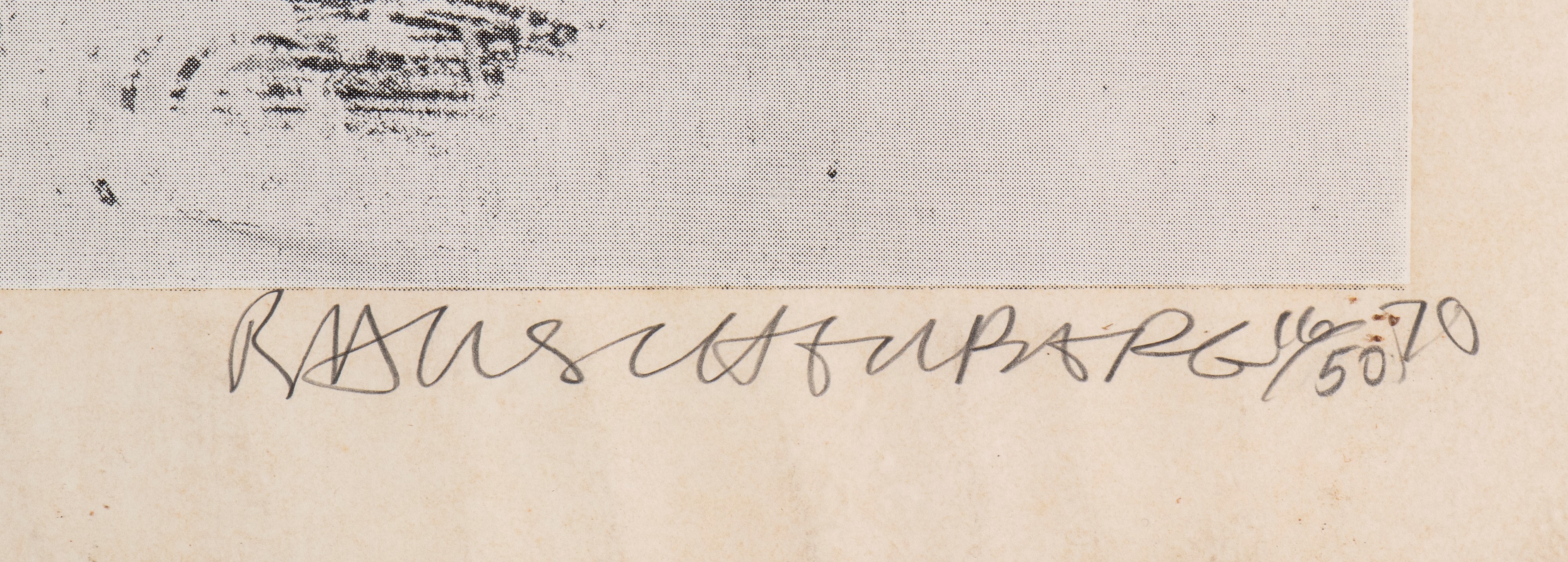 Edition 10/50, signature and date bottom right: Rauschenberg, 70. Publisher: Dayton's Gallery 12, Minneapolis, Castelli Graphics, New York