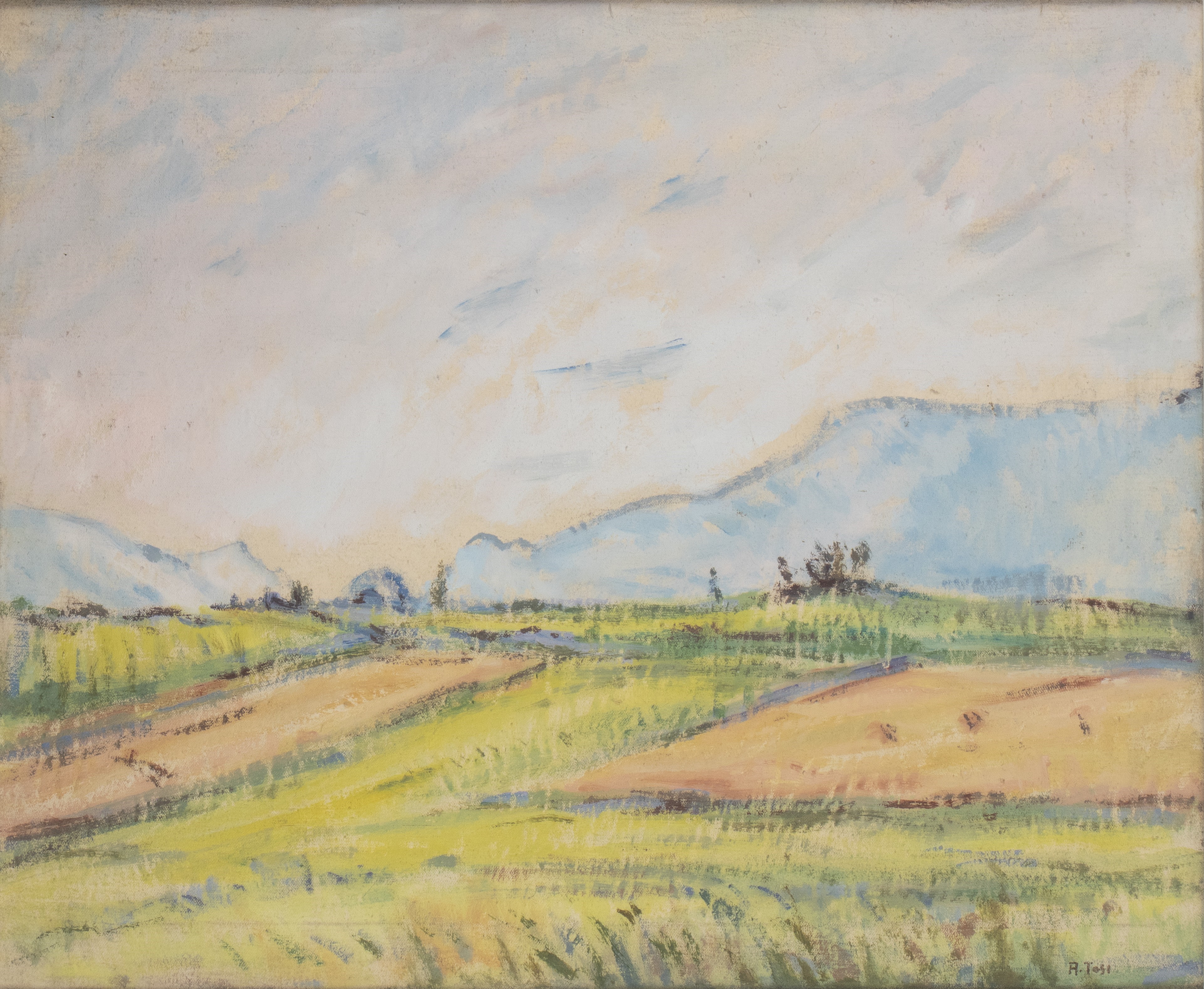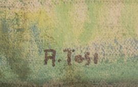 Signed bottom right: A. Tosi. On the back, labels from the Centro Artistico San Babila in Milan; Galleria d'arte Vinciana in Milan; Galleria d'arte La Paolina in Rome and the VII Nazionale di Arte Figurativa in Imola (September β October 1965)