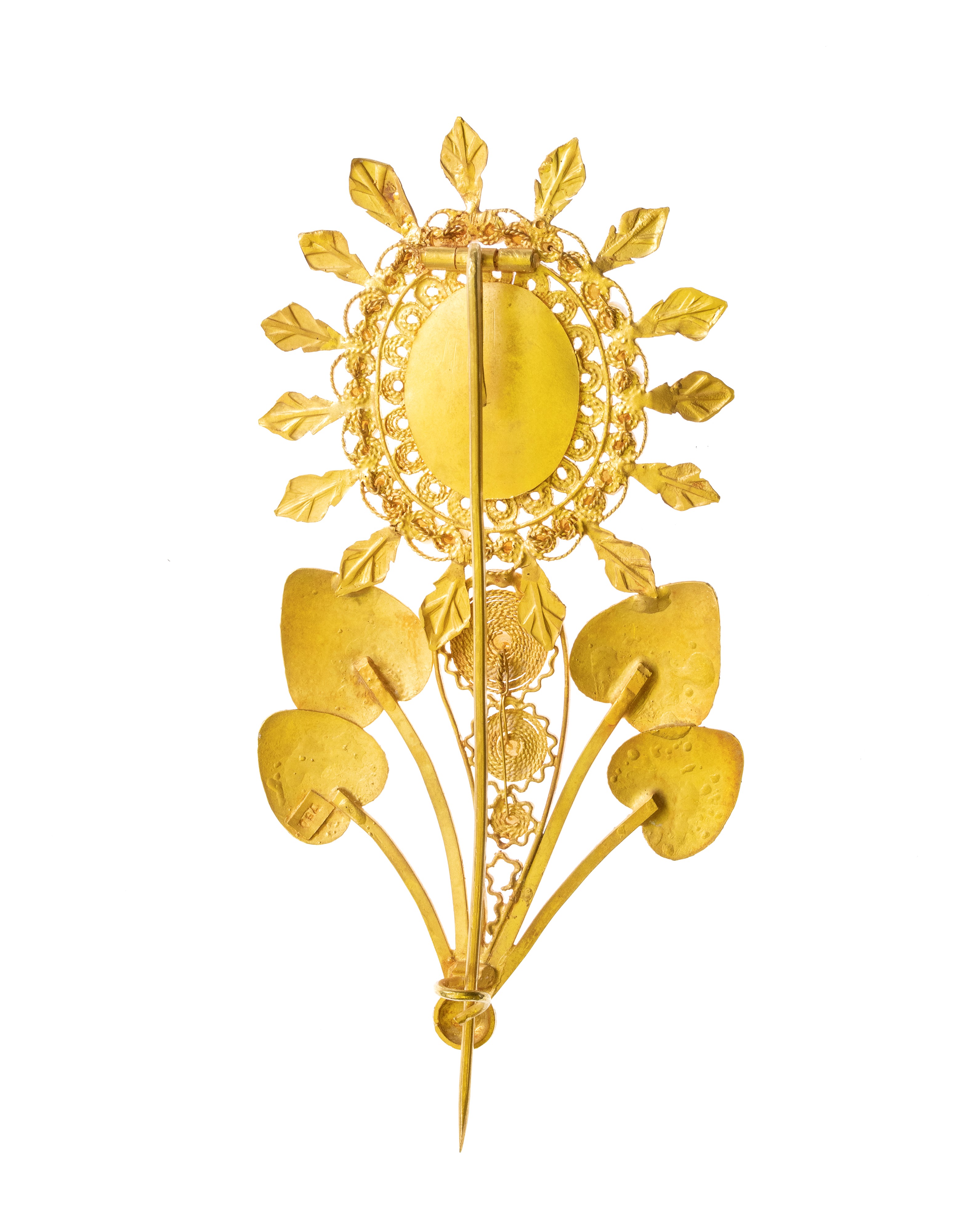 Gold Sardinian brooch with precious stones