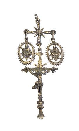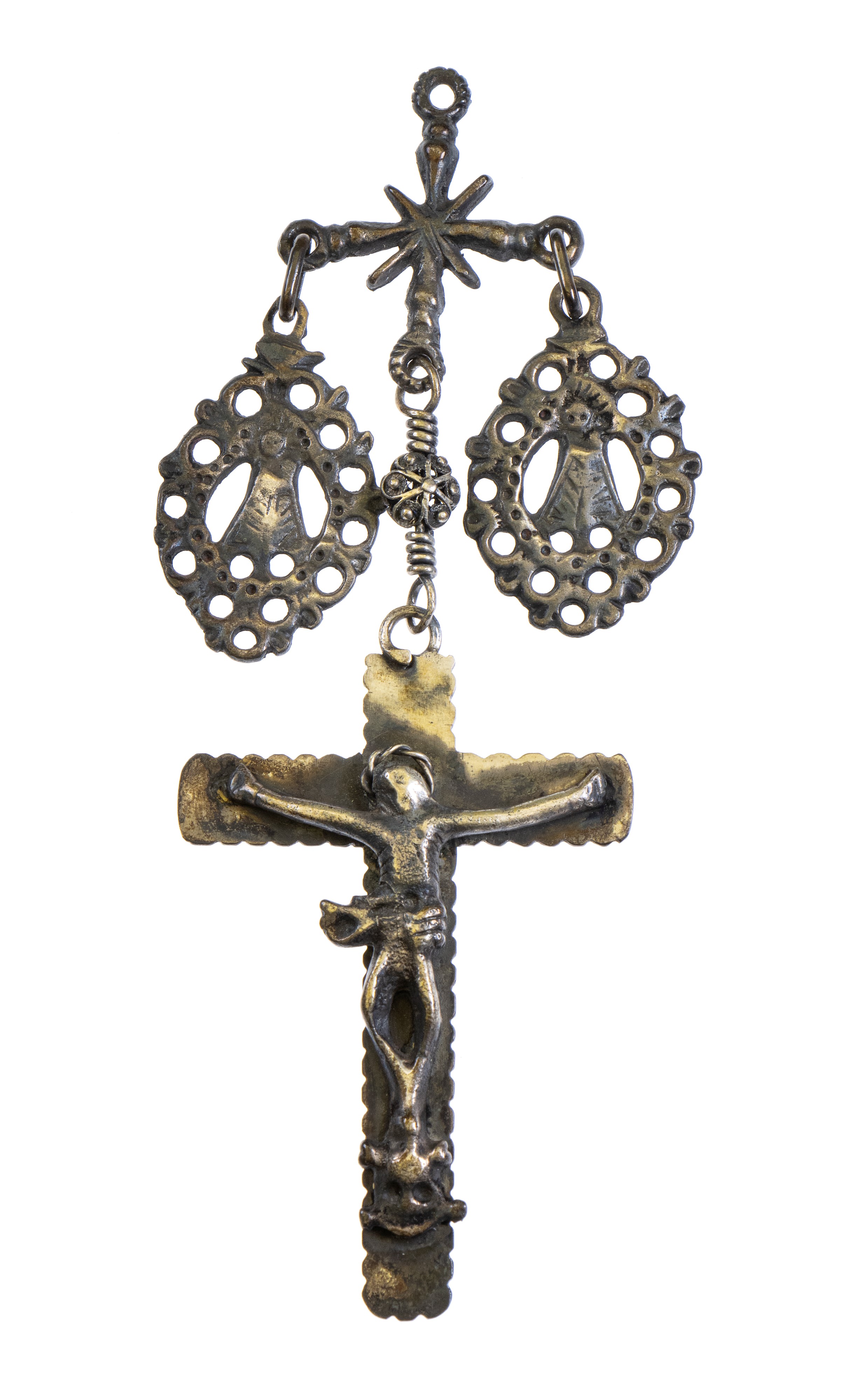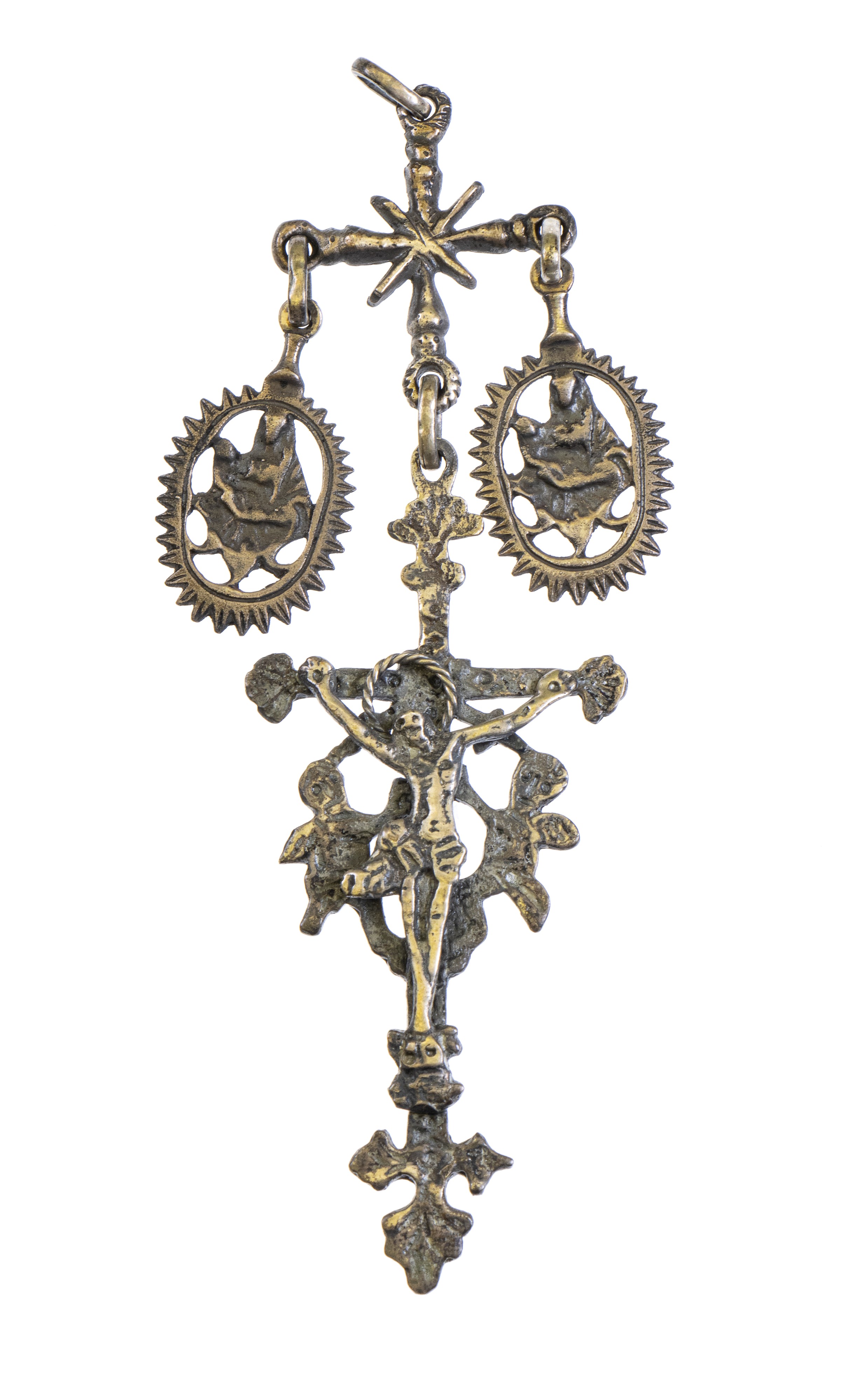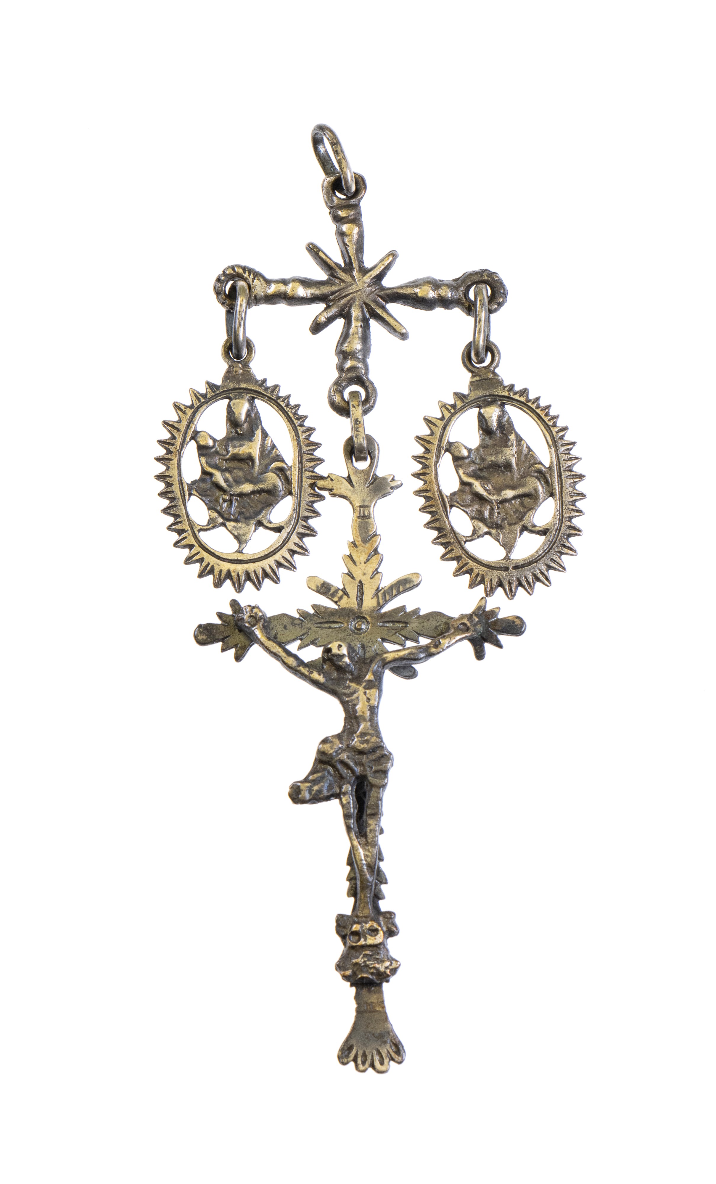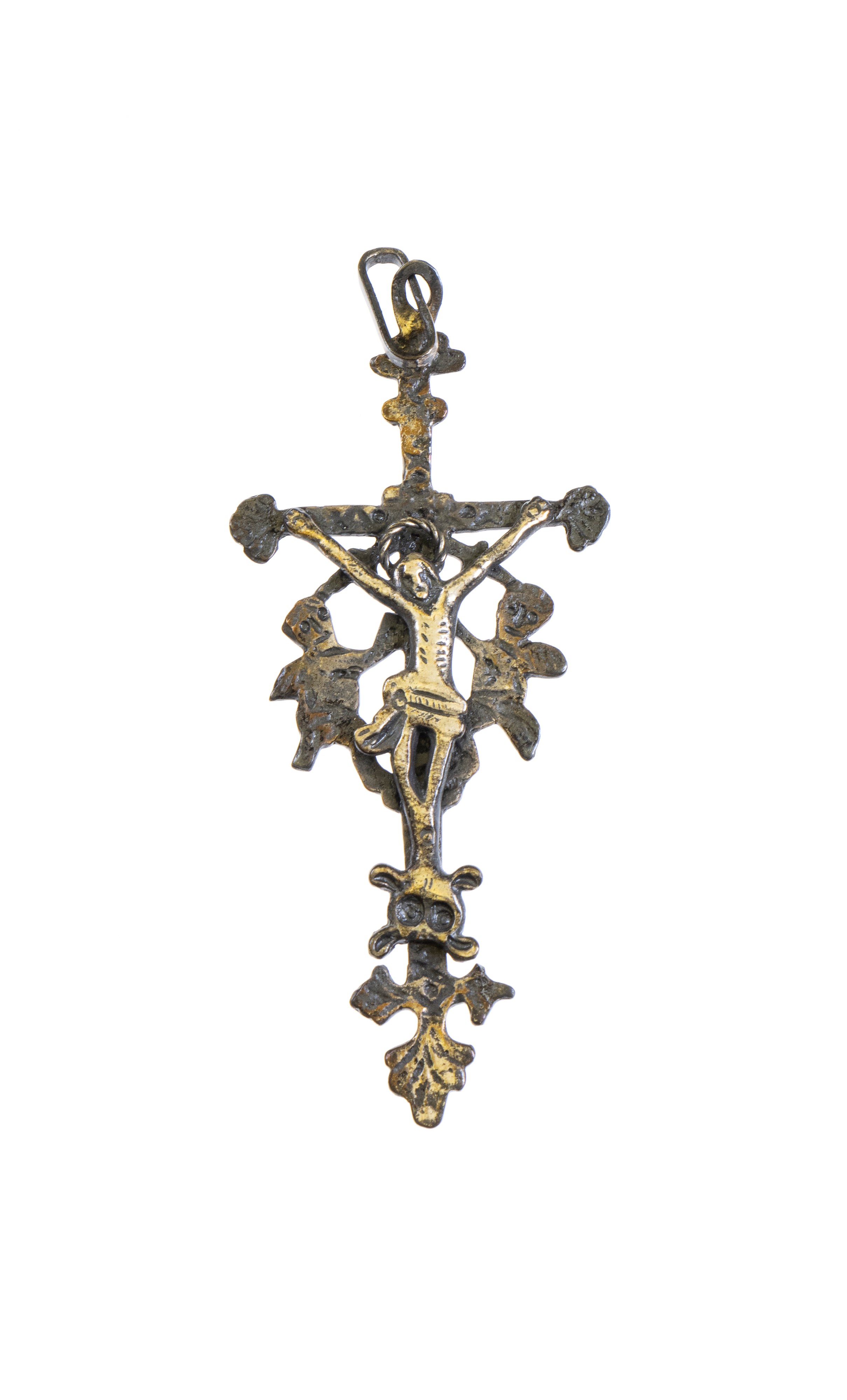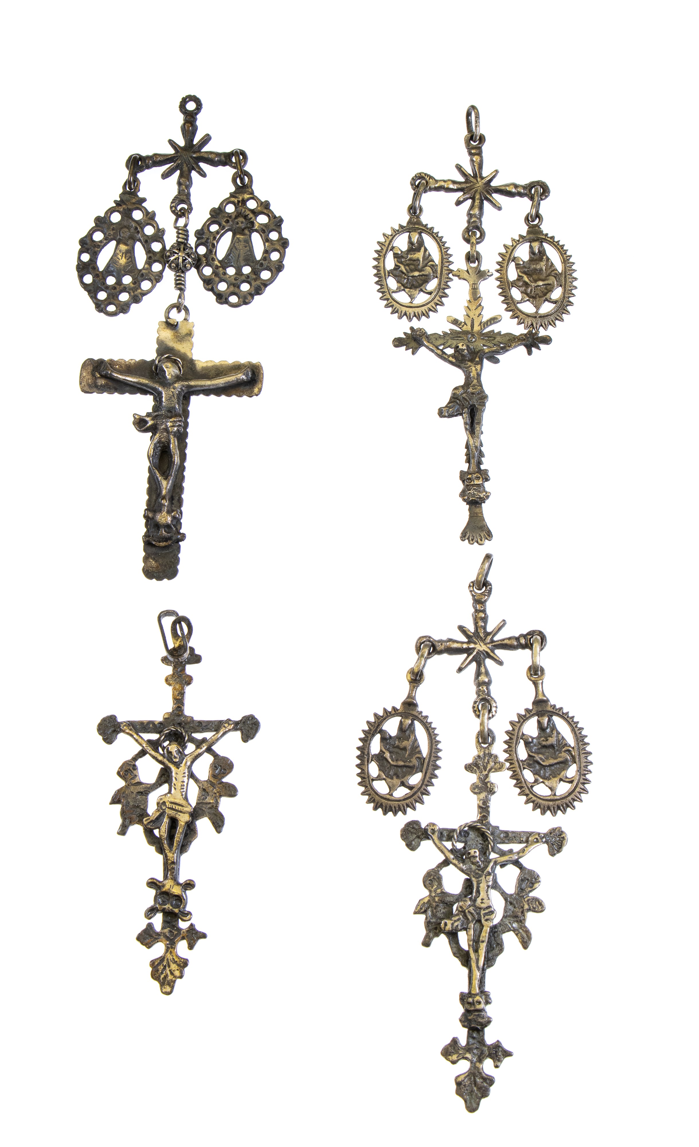 Including four types of pectoral or rosary crosses, all in the Latin cross form, featuring different depictions of the religious scene of the Crucified Christ, with the Corpus Christi at the center, represented according to the Christus Patiens (Suffering Christ) iconography. In some crosses, the head is bowed to the right, while in others it is turned upward. The details on all the crosses are poorly visible due to use and the passage of time.