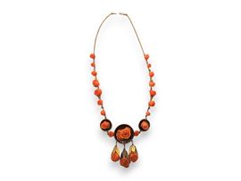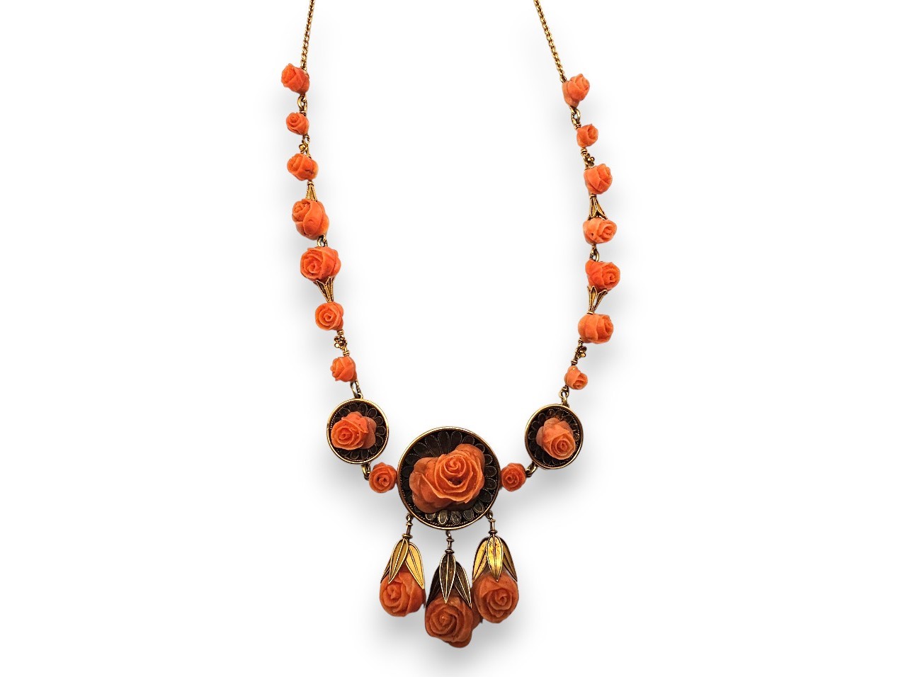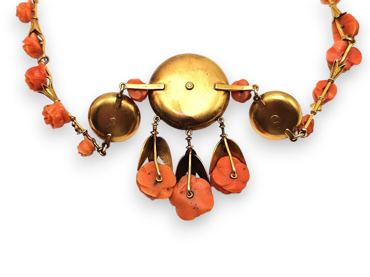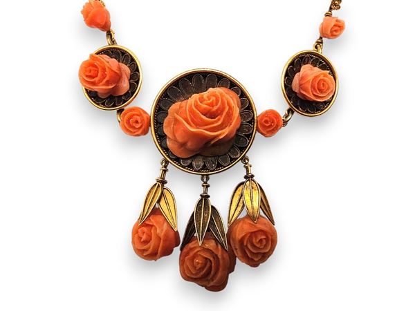 yellow gold, with line and fringe in Cerasuolo coral carved flowers (Corallium Elatius).
