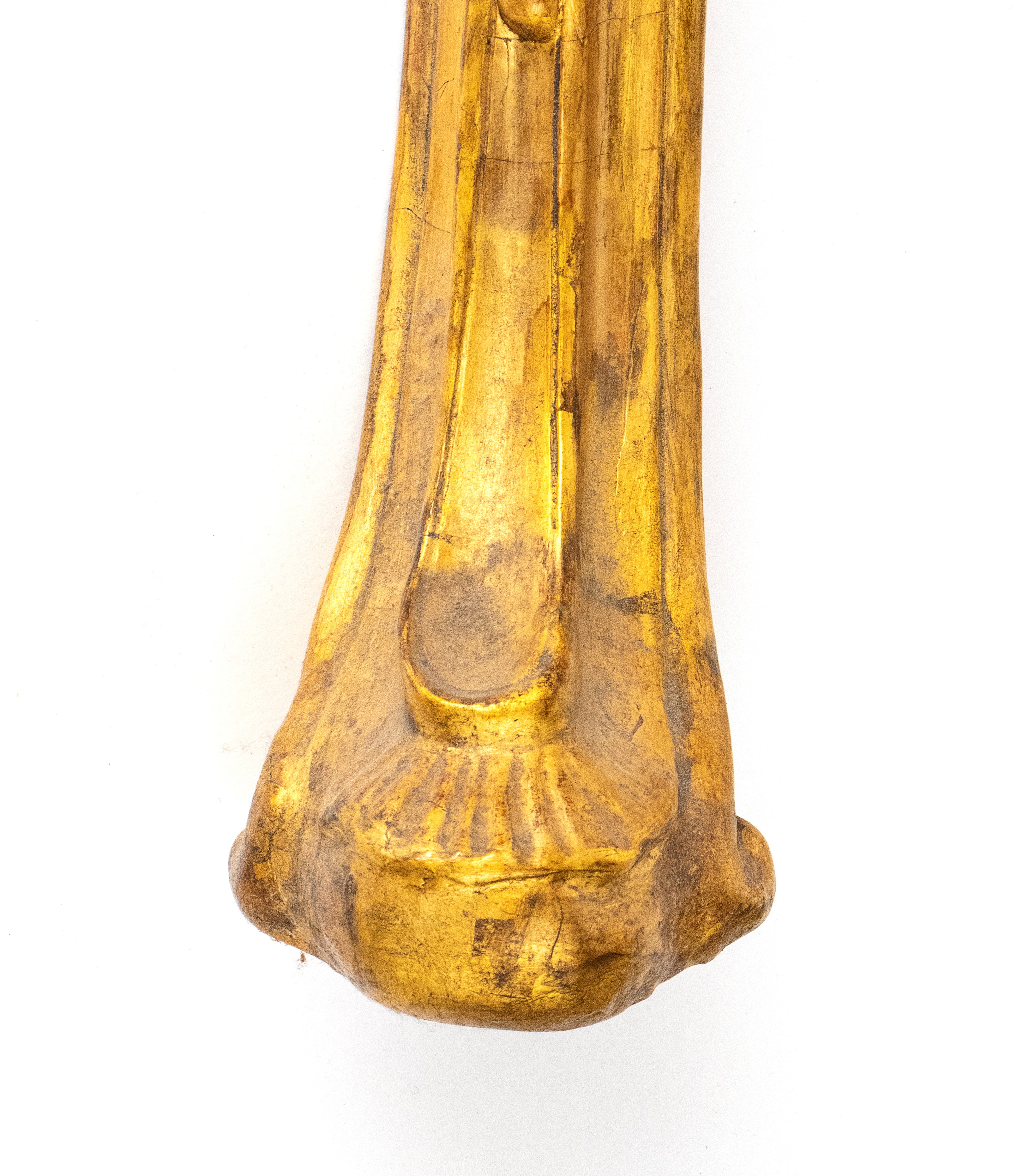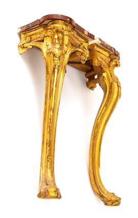 gilded and carved with naturalistic motifs, central foot with shaped top of orange breccia pontificia marble.