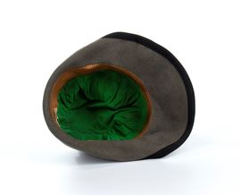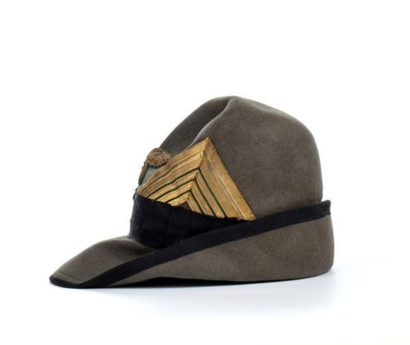 Alpine hat for a Forestry Militia consul, gray felt trimmed with a black ribbon and band, beautiful gold wire decoration on green cloth, silk lining with leather allure. In good condition, rare.