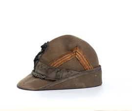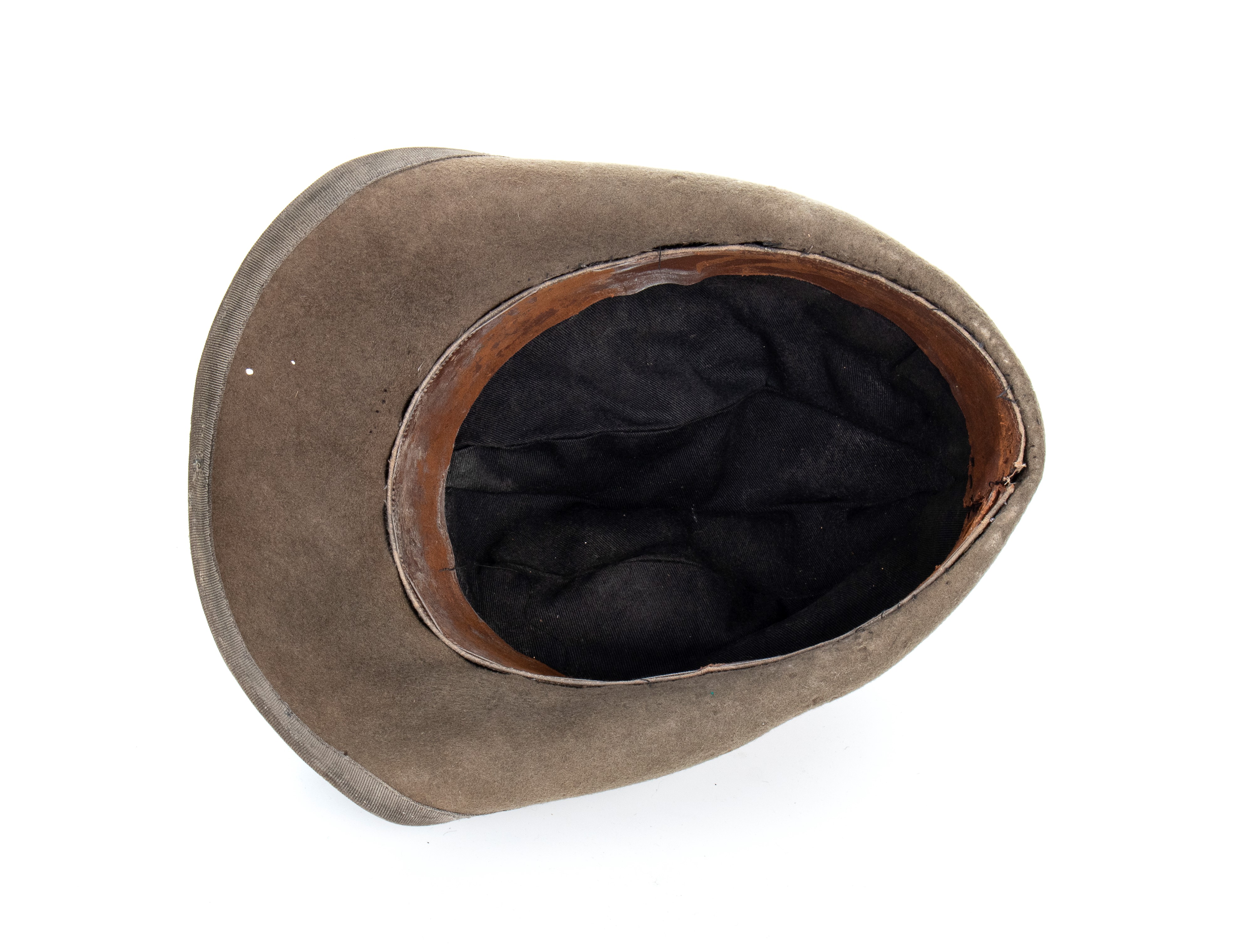 Beautiful medical officer's hat, grey/green felt with smooth black cotton lining, black cotton frieze on grey/green wool, amaranth-lined ranks in excellent condition, without tassel, rare with anti-glare frieze from the war period.