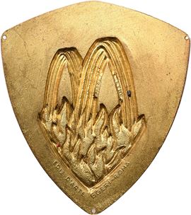 Bronze and polychrome enamel shield, with the maker's mark, Boeri, Rome, on the back; the enamels are intact and in excellent condition.