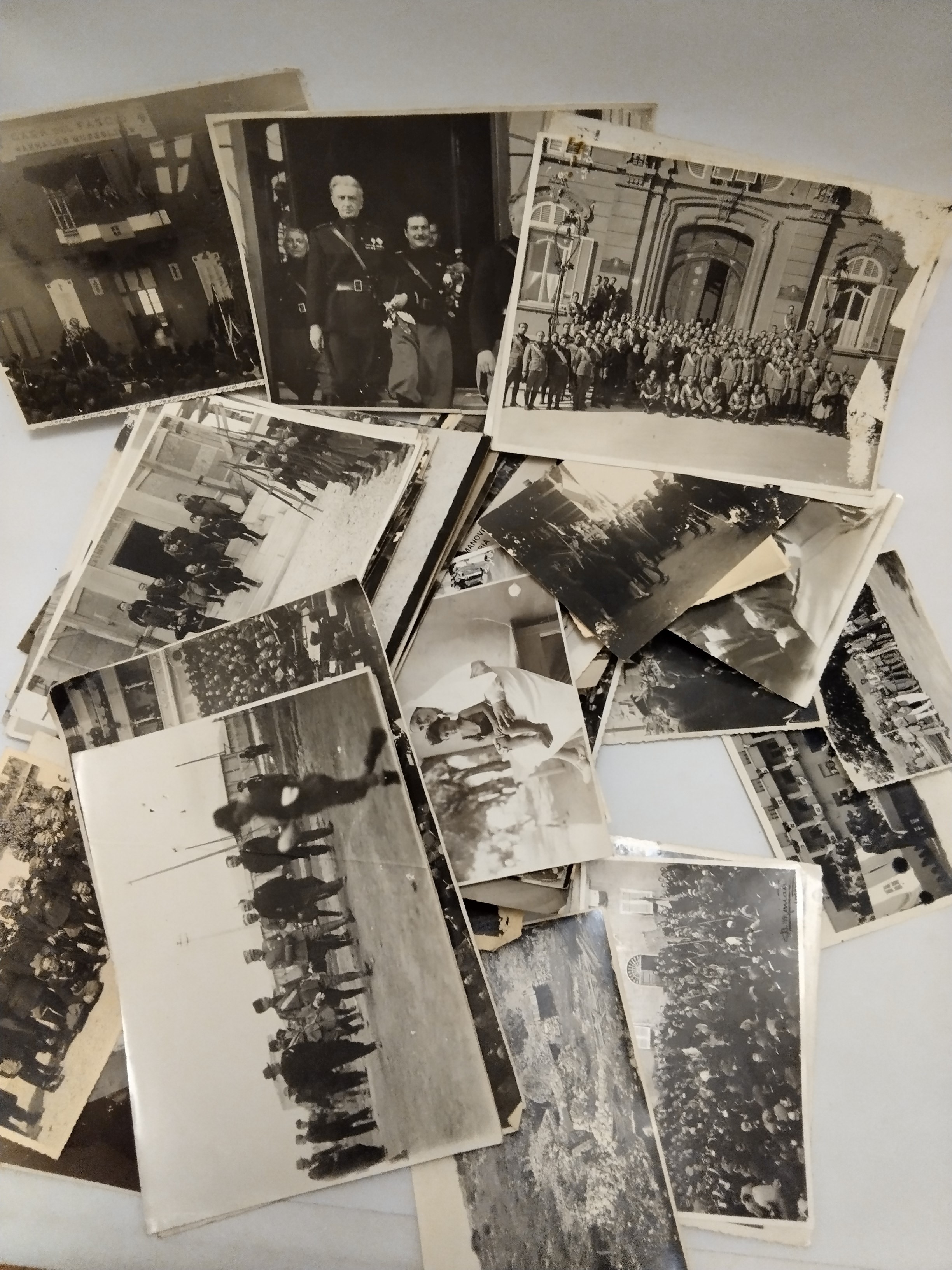 Large batch of photographs depicting the political life of the city of Livorno during the twenty-year period, including personal photographs of Galeazzo Ciano with Edda and local figures, some of which are in poor condition.