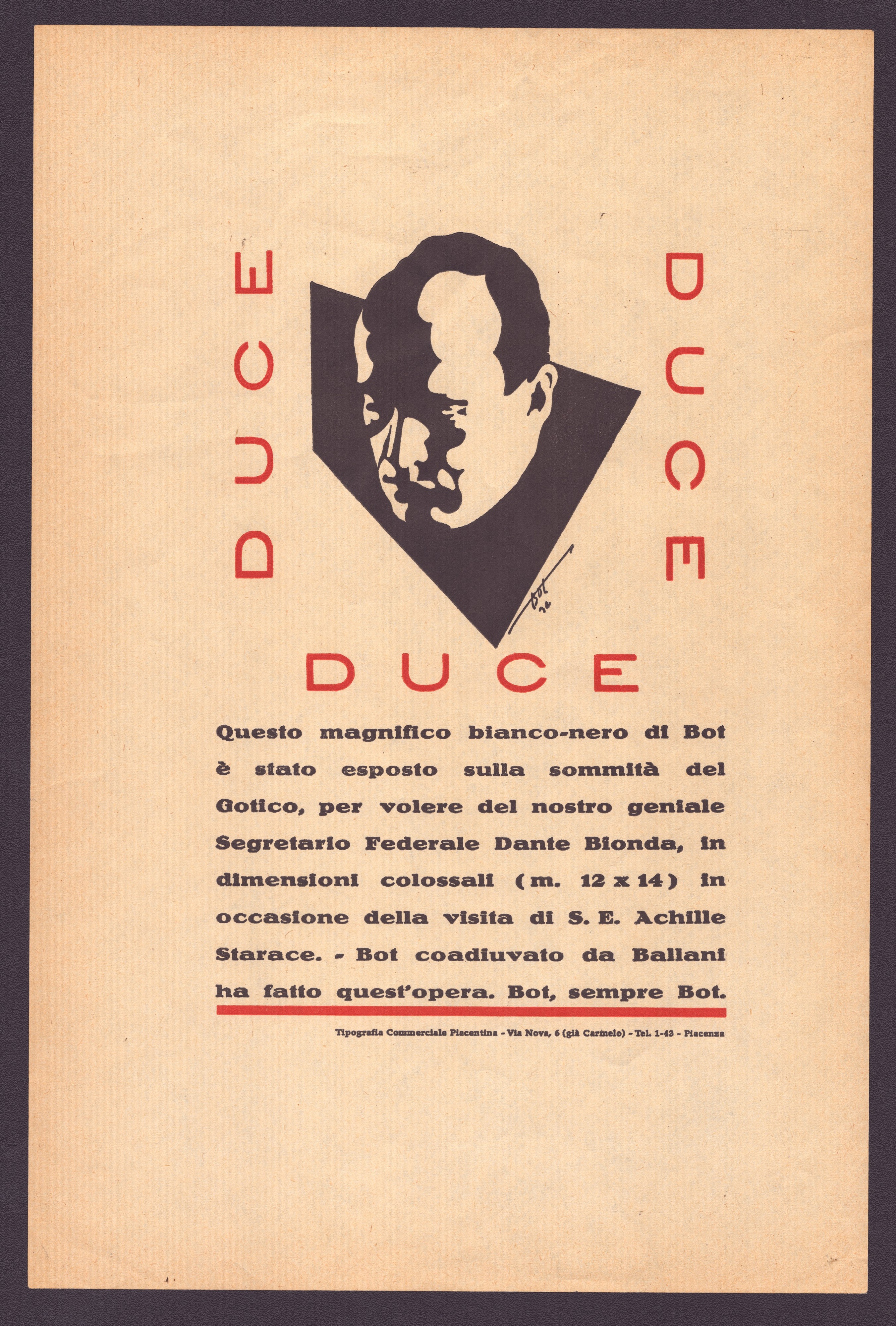 Flyer for Bot's sculpture, 330 x 220 mm + a Vinceremo postcard 105 x 150 mm.
