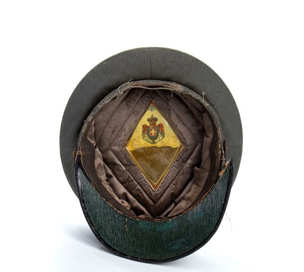M.34 cap in grey cord with lieutenant colonel's plate rank and Royal Finance Guard insignia with narrow flame from the early 1930s, relevant chin buttons, in good condition with some nicks.